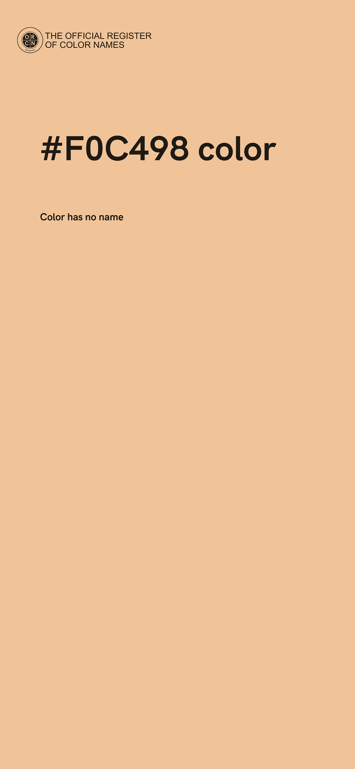 The digital color HEX #F0C498 belongs to the Orange Color Family featuring High Saturation (Saturation Family) and Very Light (Brightness Family).