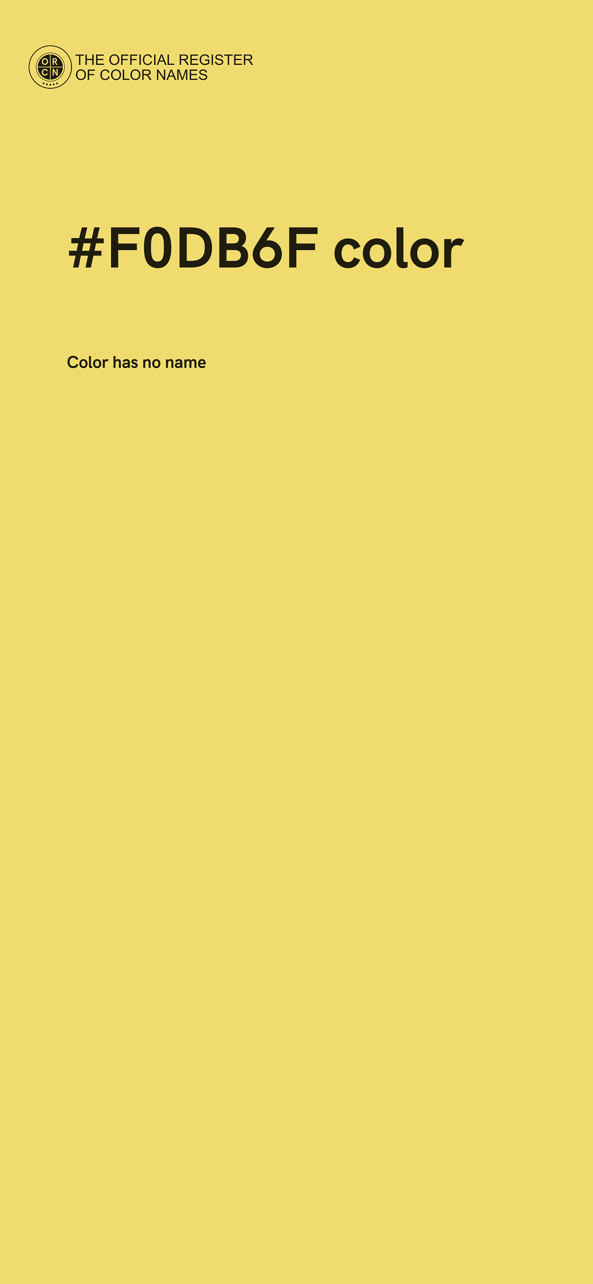 The digital color HEX #F0DB6F belongs to the Yellow Color Family featuring High Saturation (Saturation Family) and Very Light (Brightness Family).