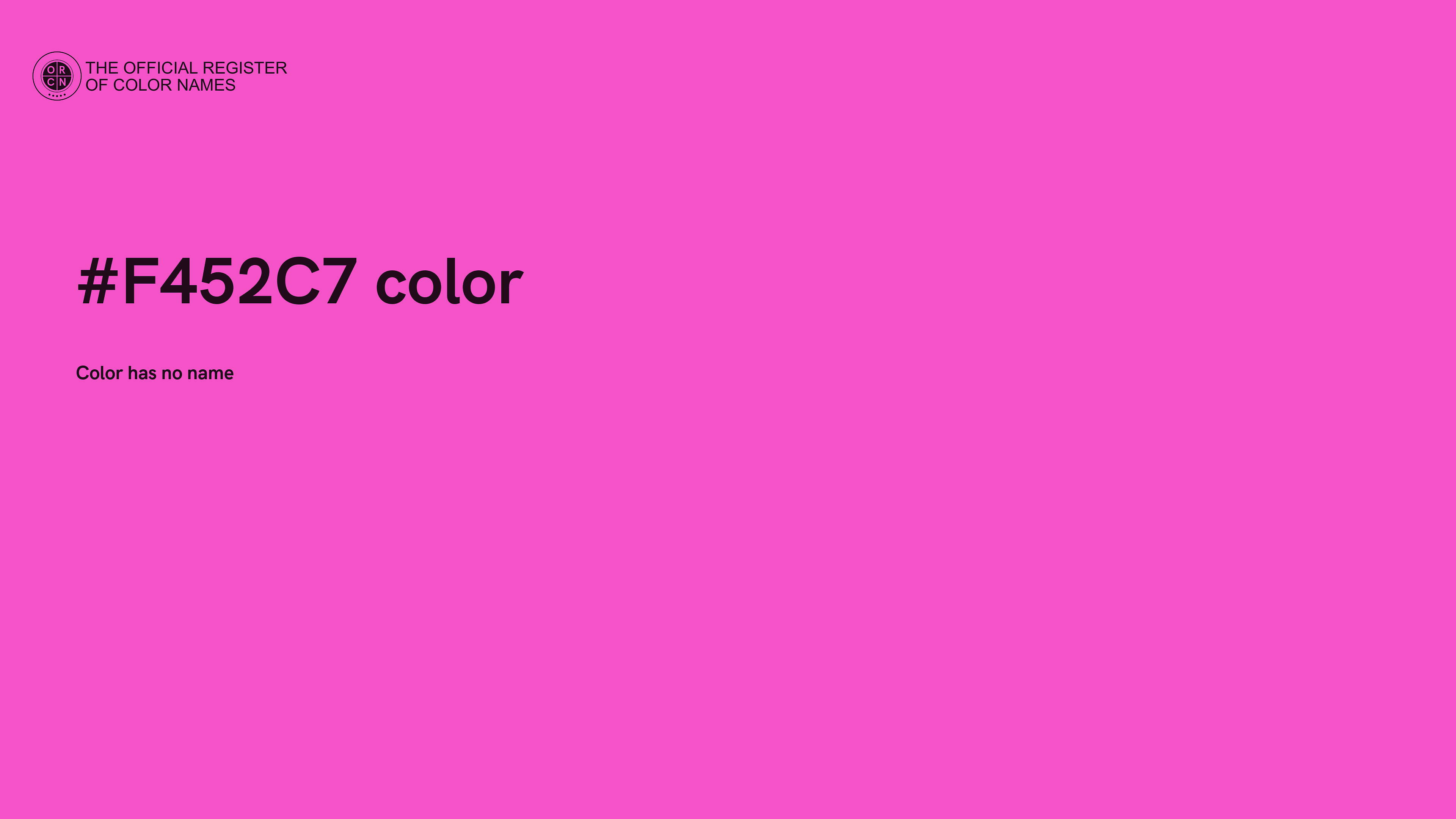 The digital color HEX #F452C7 belongs to the Rose Color Family featuring Full Saturation (Saturation Family) and Very Light (Brightness Family).