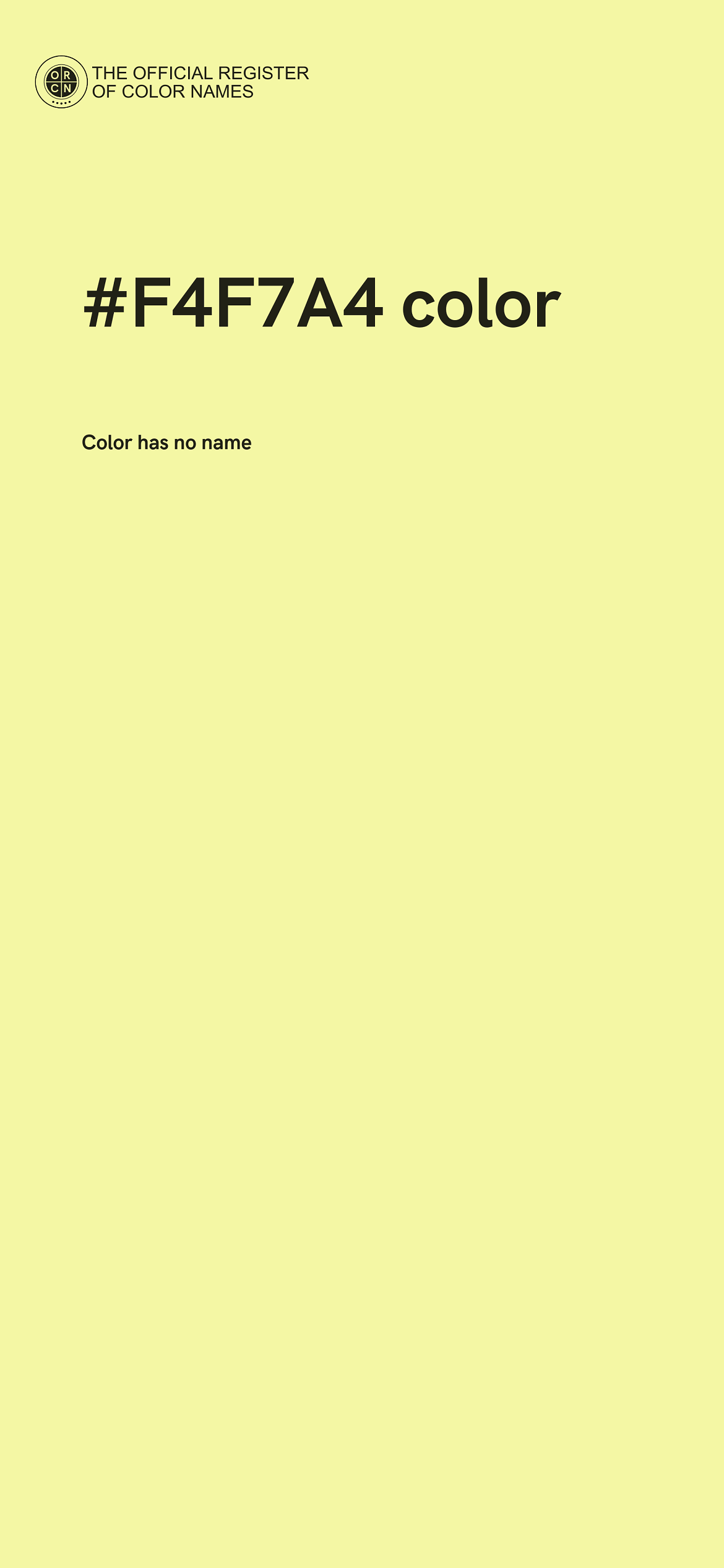 For printing in non digital world, #F4F7A4 is represented in CMYK as 1 Cyan, 0 Magenta, 33 Yellow, and 3 Black (Key) (C:1 M:0 Y:33 K:3).