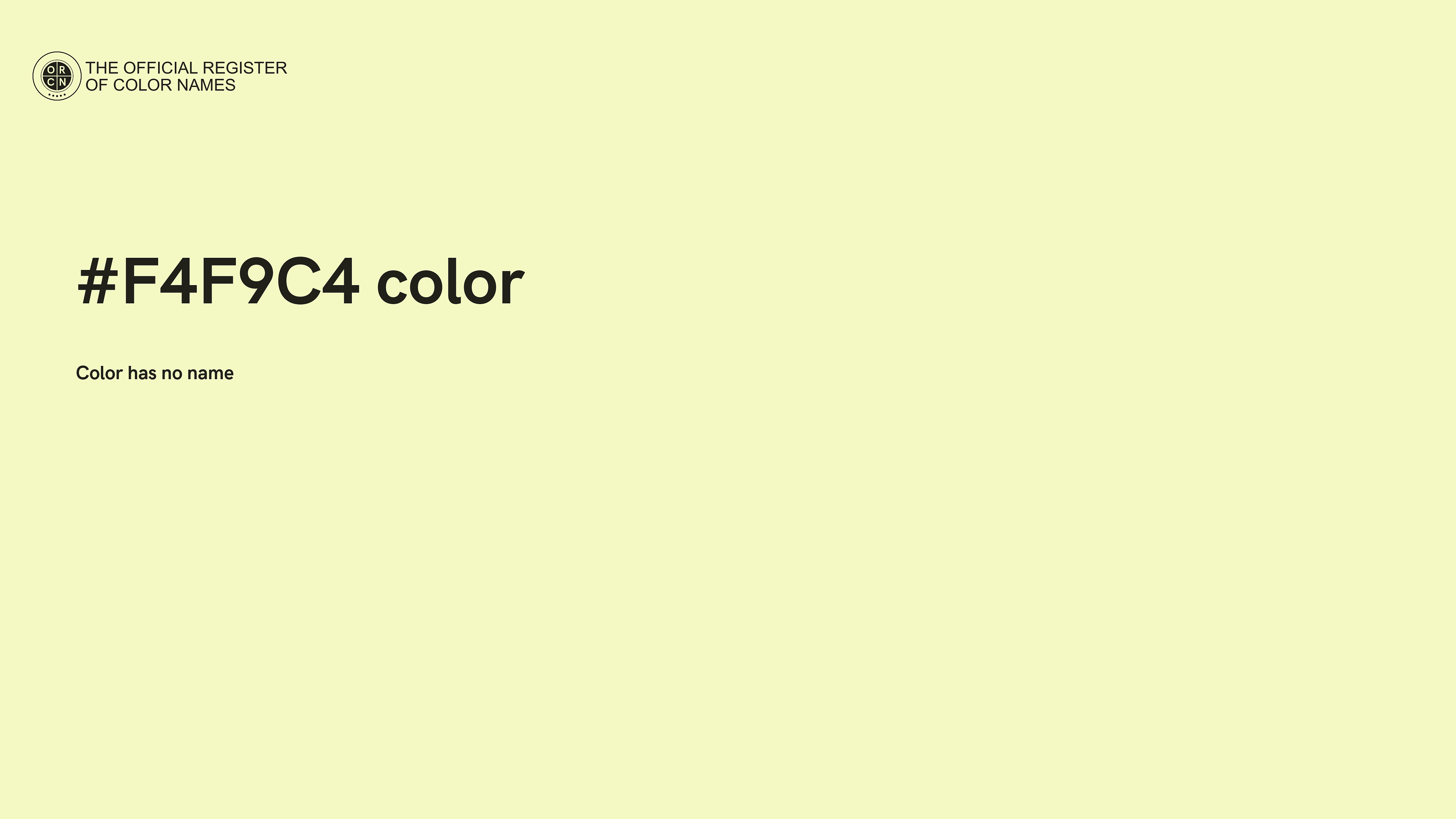 For printing in non digital world, #F4F9C4 is represented in CMYK as 2 Cyan, 0 Magenta, 21 Yellow, and 2 Black (Key) (C:2 M:0 Y:21 K:2).