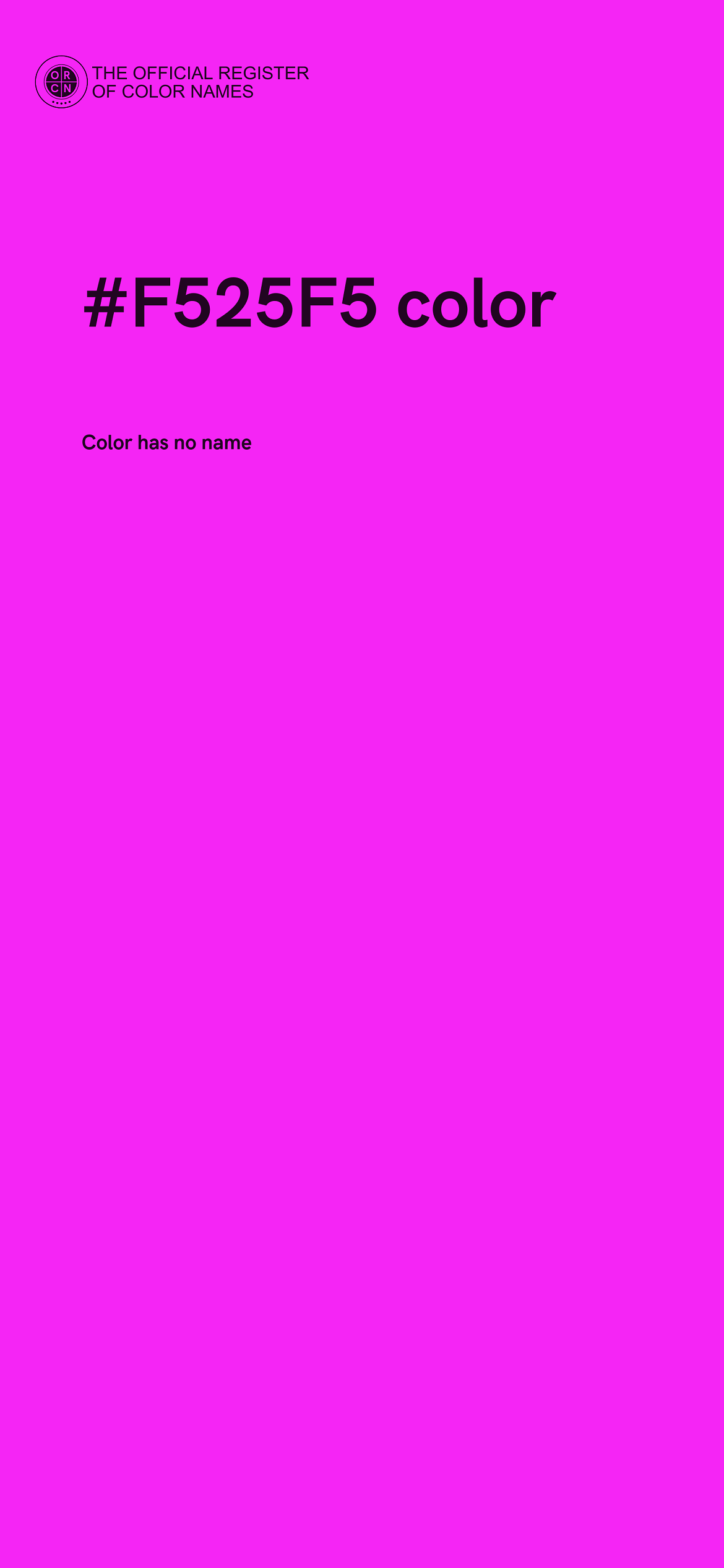 The digital color HEX #F525F5 belongs to the Magenta Color Family featuring Full Saturation (Saturation Family) and Light (Brightness Family).