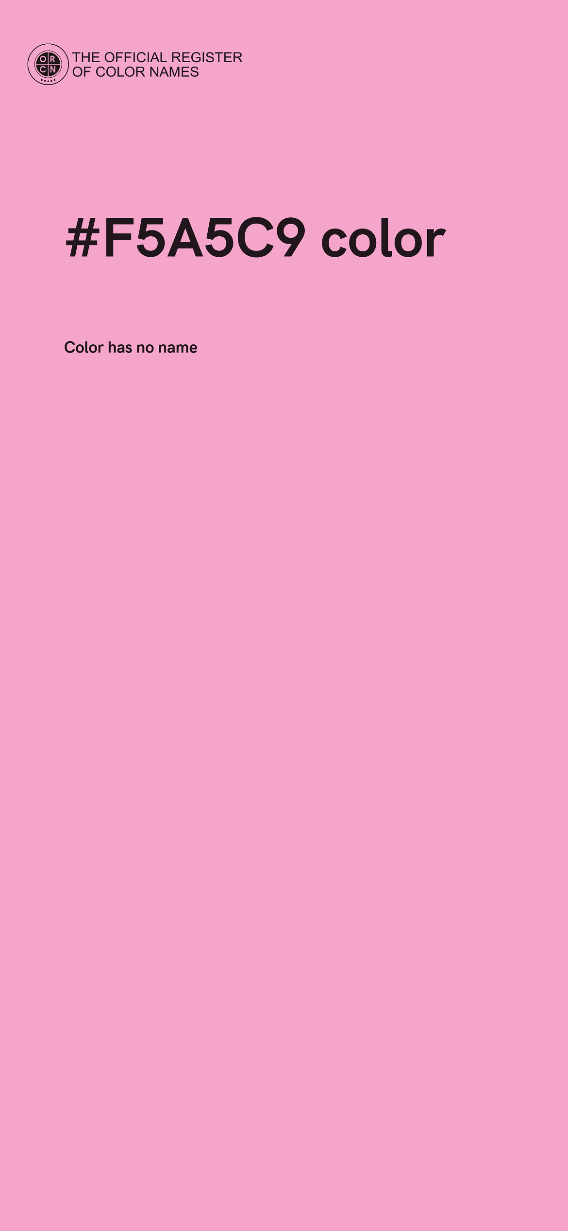 The digital color HEX #F5A5C9 belongs to the Rose Color Family featuring High Saturation (Saturation Family) and Very Light (Brightness Family).