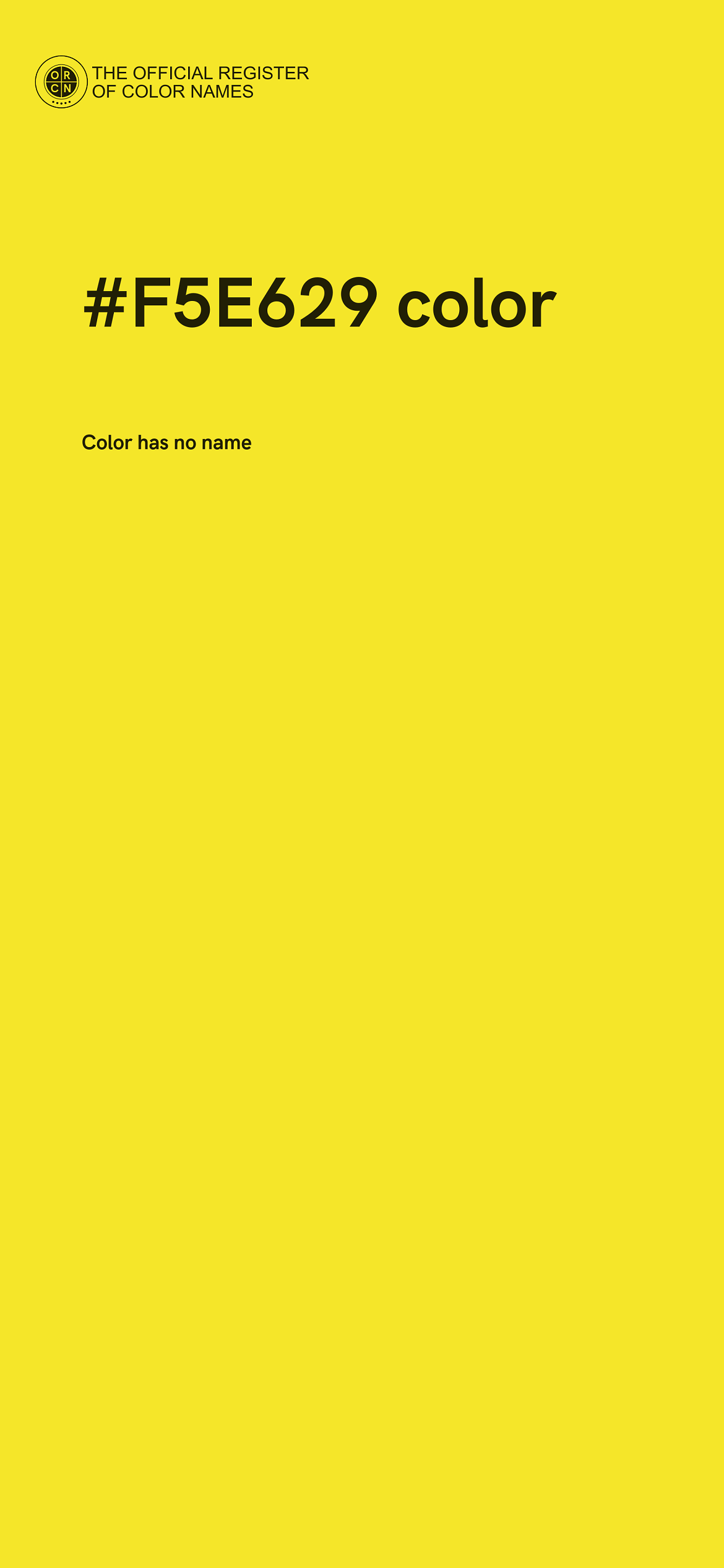 The digital color HEX #F5E629 belongs to the Yellow Color Family featuring Full Saturation (Saturation Family) and Light (Brightness Family).
