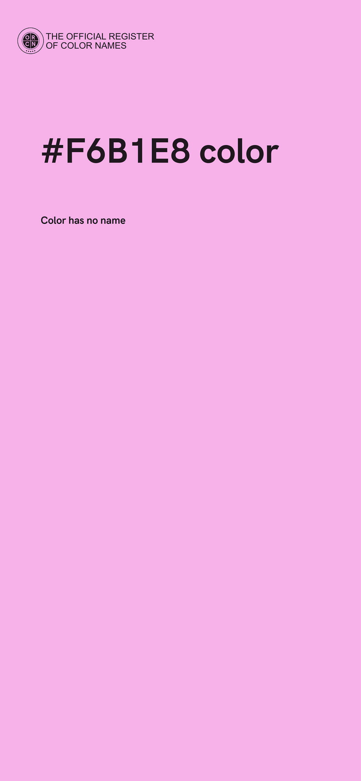For printing in non digital world, #F6B1E8 is represented in CMYK as 0 Cyan, 27 Magenta, 5 Yellow, and 4 Black (Key) (C:0 M:27 Y:5 K:4).