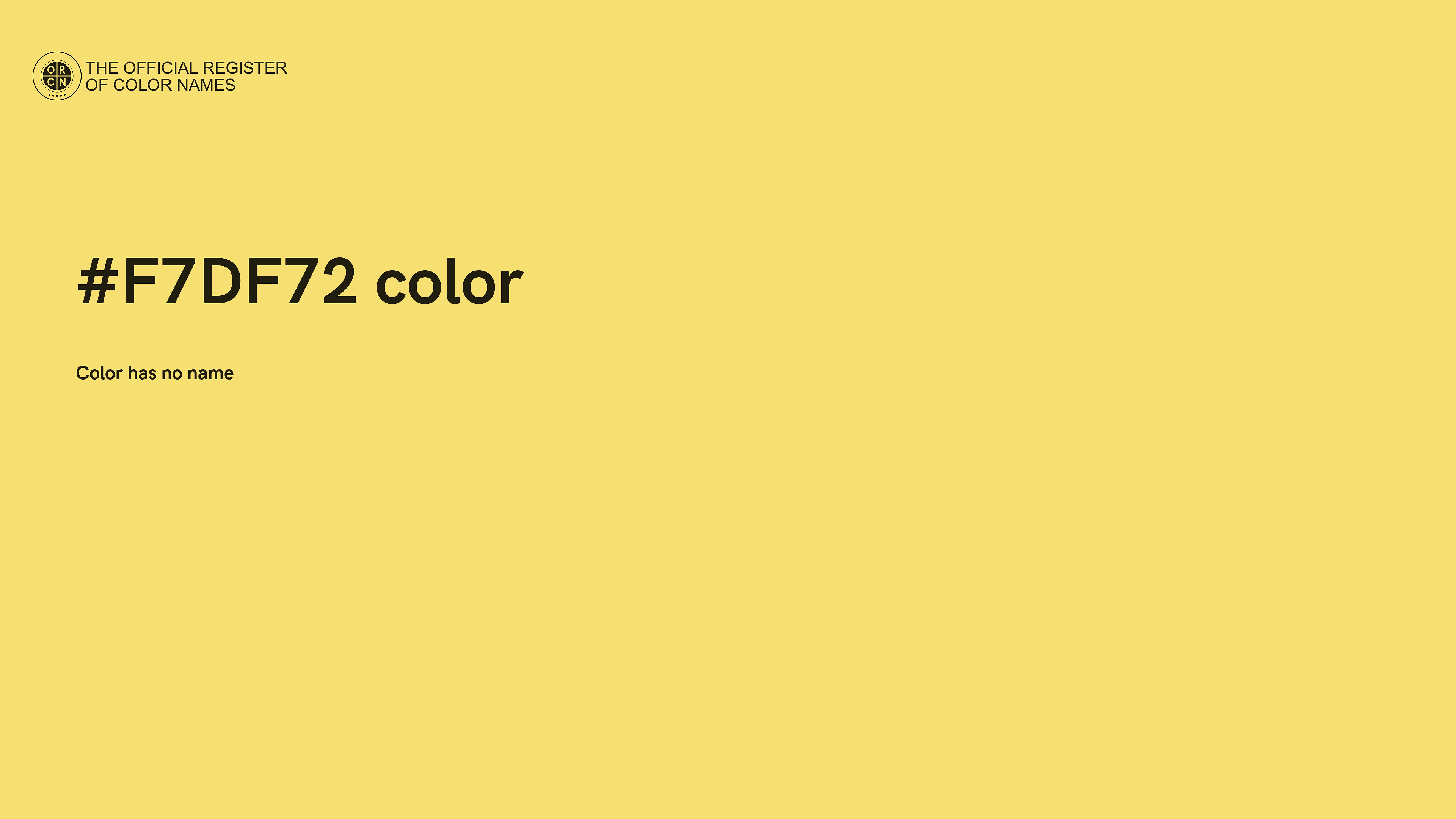 For printing in non digital world, #F7DF72 is represented in CMYK as 0 Cyan, 9 Magenta, 52 Yellow, and 3 Black (Key) (C:0 M:9 Y:52 K:3).