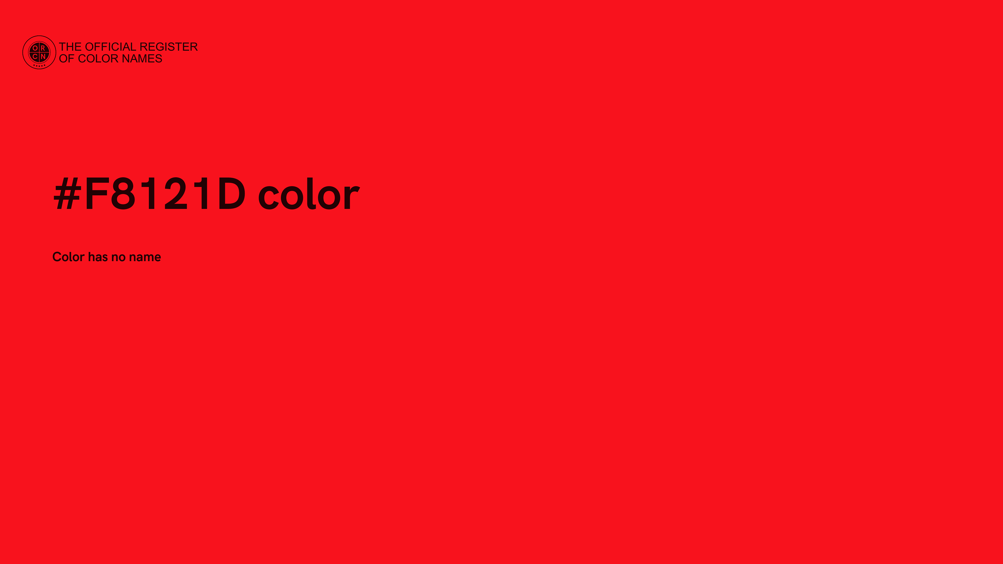 The digital color HEX #F8121D belongs to the Red Color Family featuring Full Saturation (Saturation Family) and Light (Brightness Family).