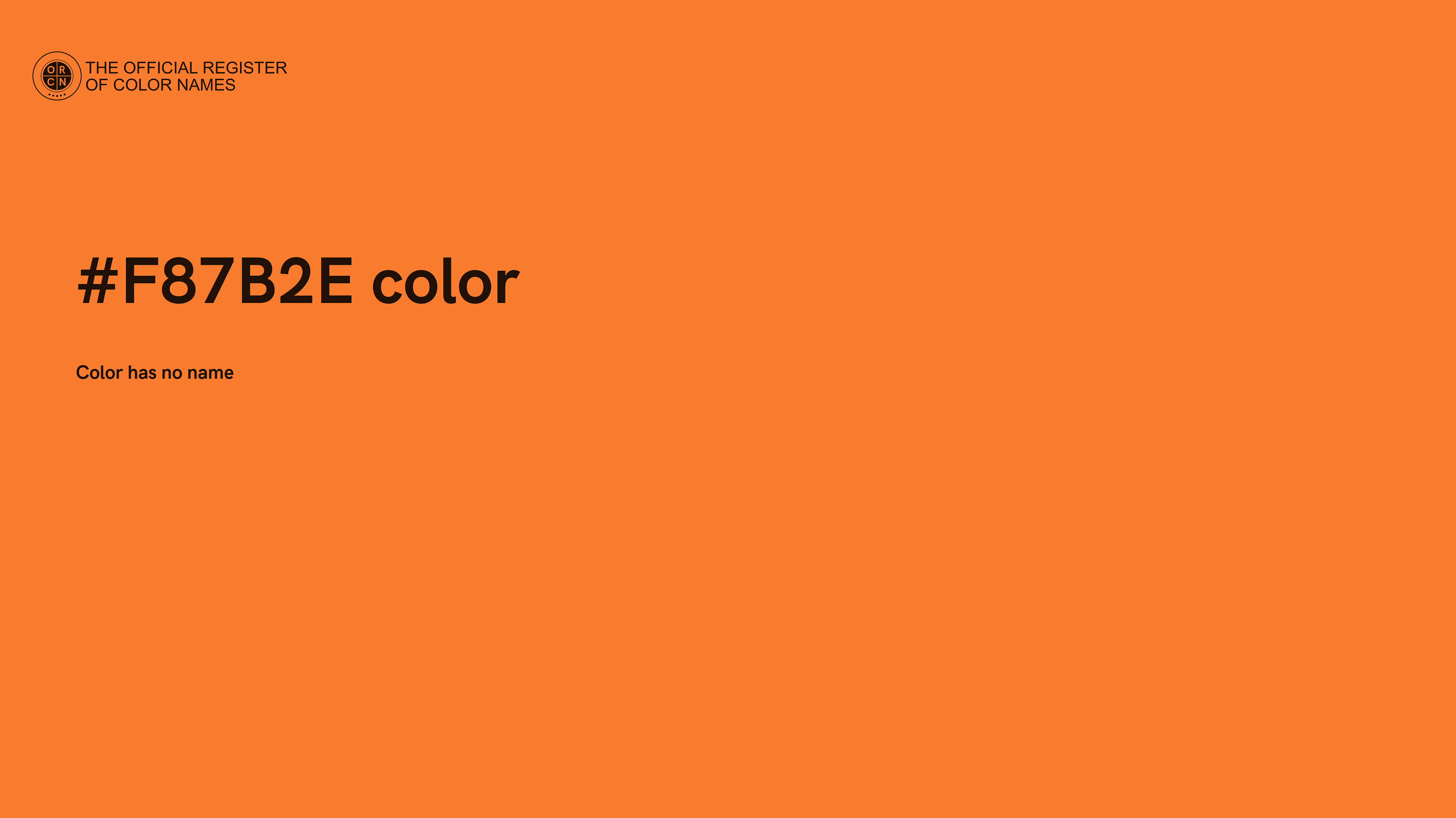 The digital color HEX #F87B2E belongs to the Orange Color Family featuring Full Saturation (Saturation Family) and Light (Brightness Family).