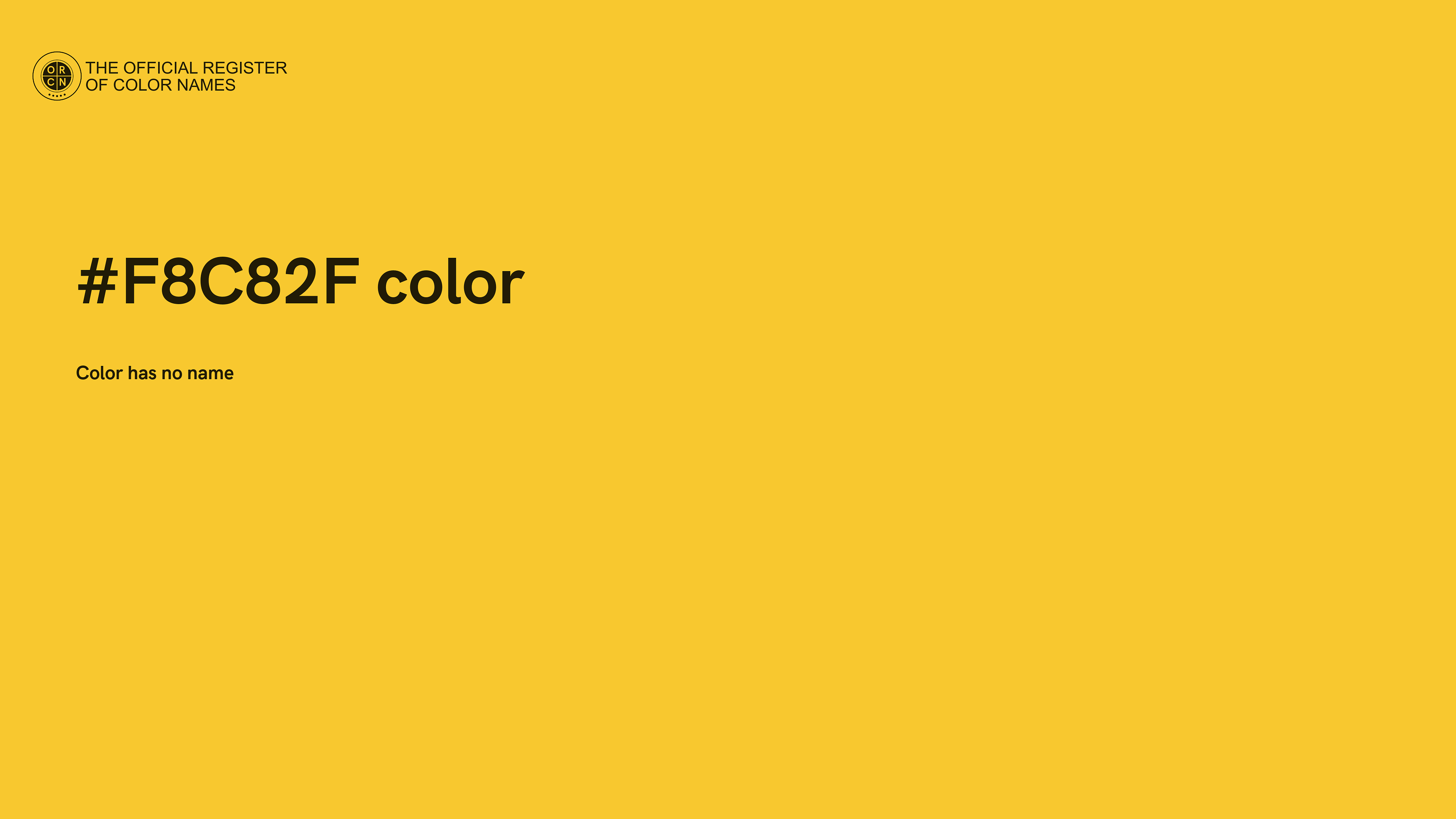 The digital color HEX #F8C82F belongs to the Yellow Color Family featuring Full Saturation (Saturation Family) and Light (Brightness Family).