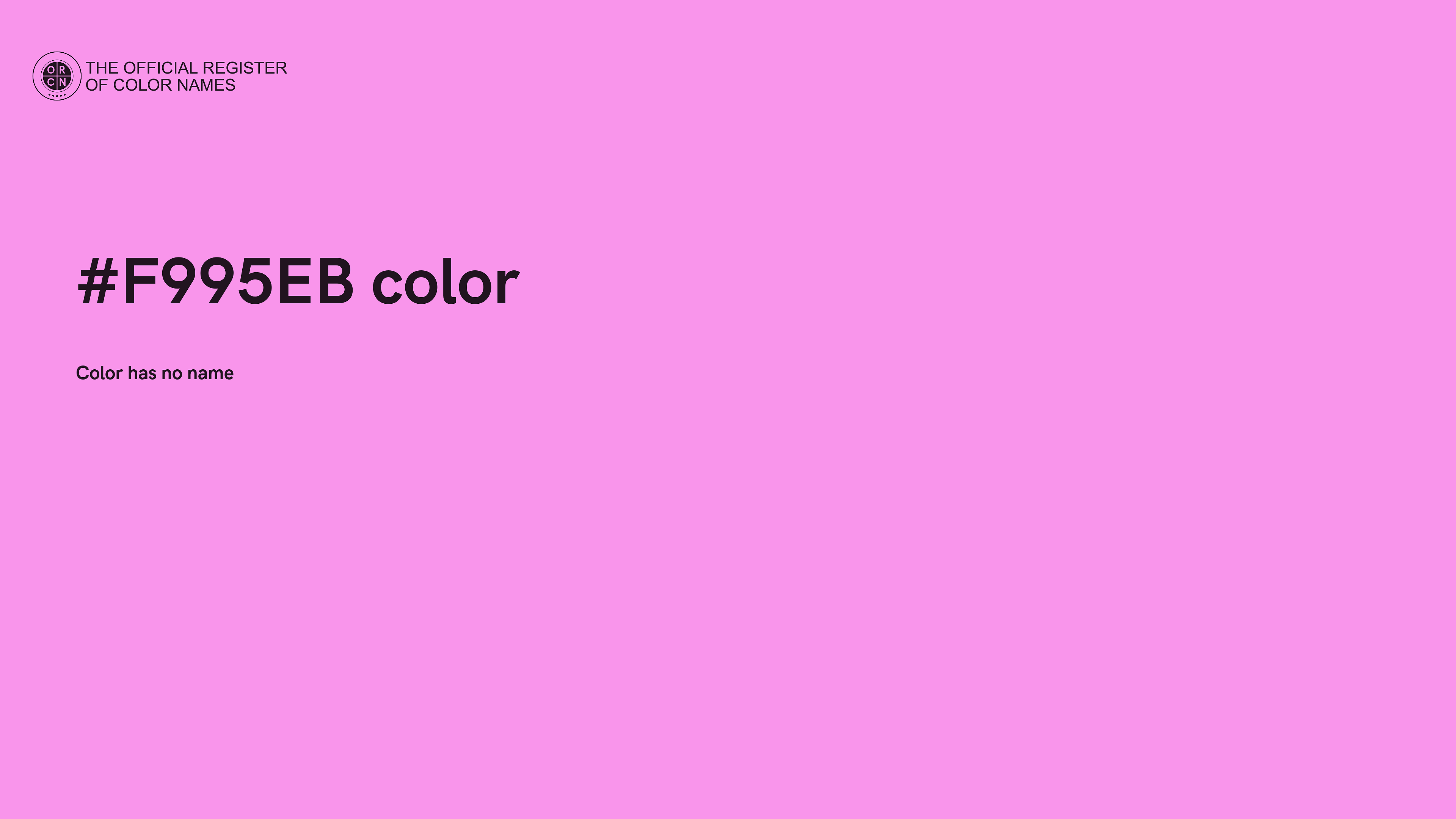 The digital color HEX #F995EB belongs to the Magenta Color Family featuring Full Saturation (Saturation Family) and Very Light (Brightness Family).