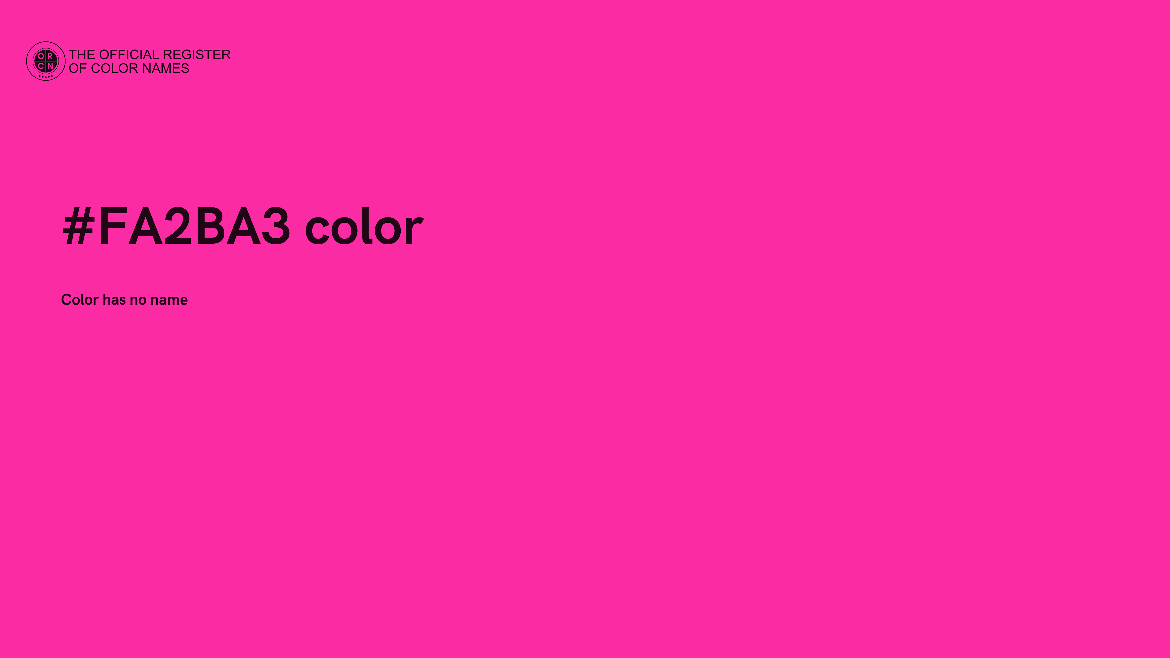 The digital color HEX #FA2BA3 belongs to the Rose Color Family featuring Full Saturation (Saturation Family) and Light (Brightness Family).