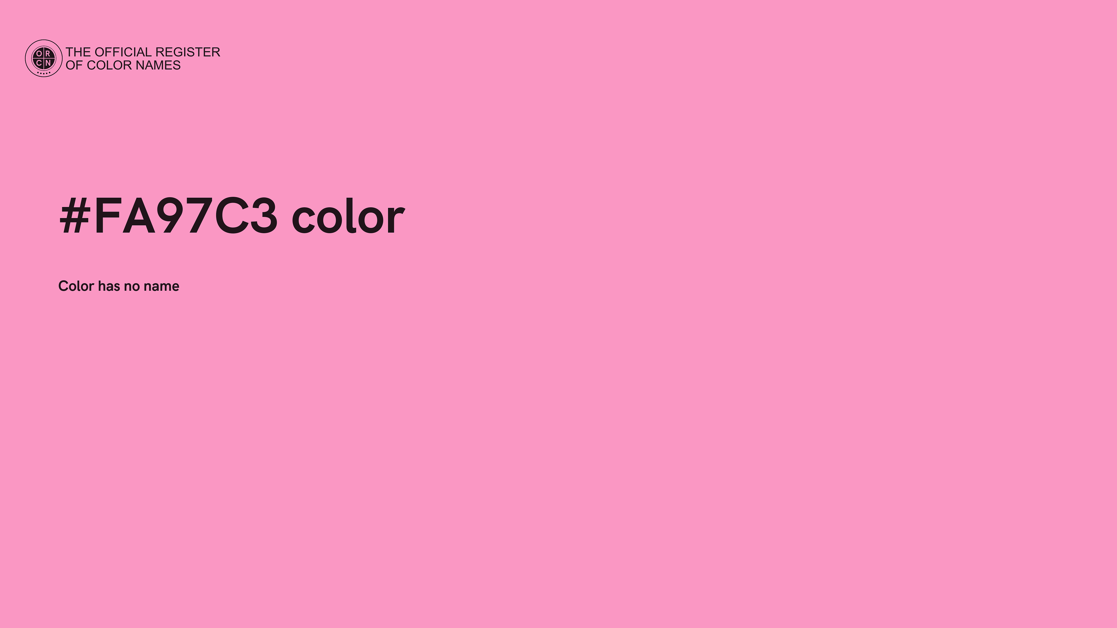 The digital color HEX #FA97C3 belongs to the Rose Color Family featuring Full Saturation (Saturation Family) and Very Light (Brightness Family).
