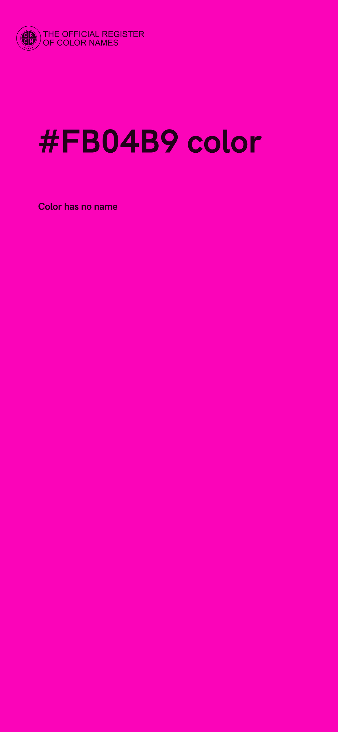 The digital color HEX #FB04B9 belongs to the Rose Color Family featuring Full Saturation (Saturation Family) and Light (Brightness Family).