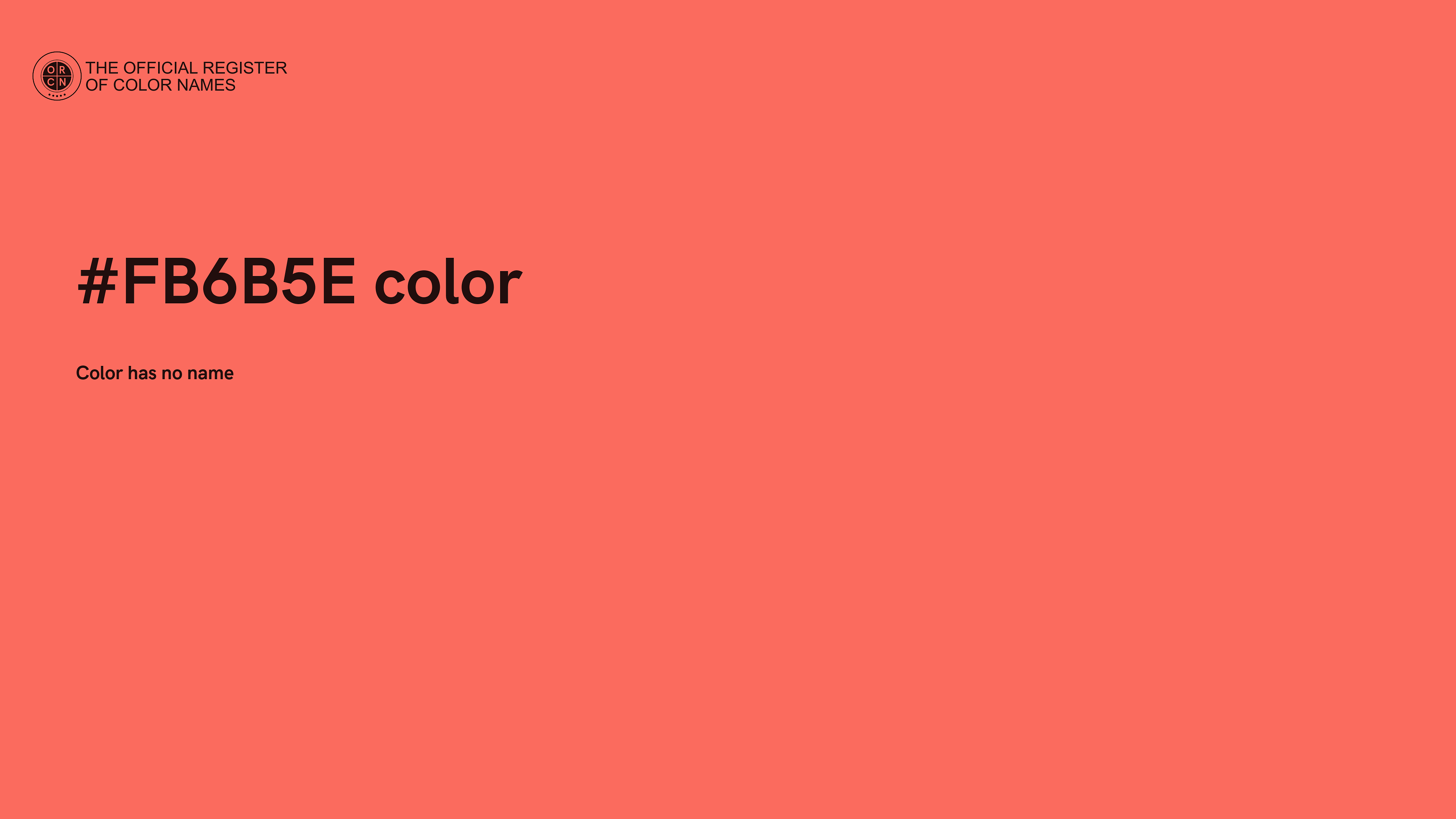The digital color HEX #FB6B5E belongs to the Red Color Family featuring Full Saturation (Saturation Family) and Very Light (Brightness Family).
