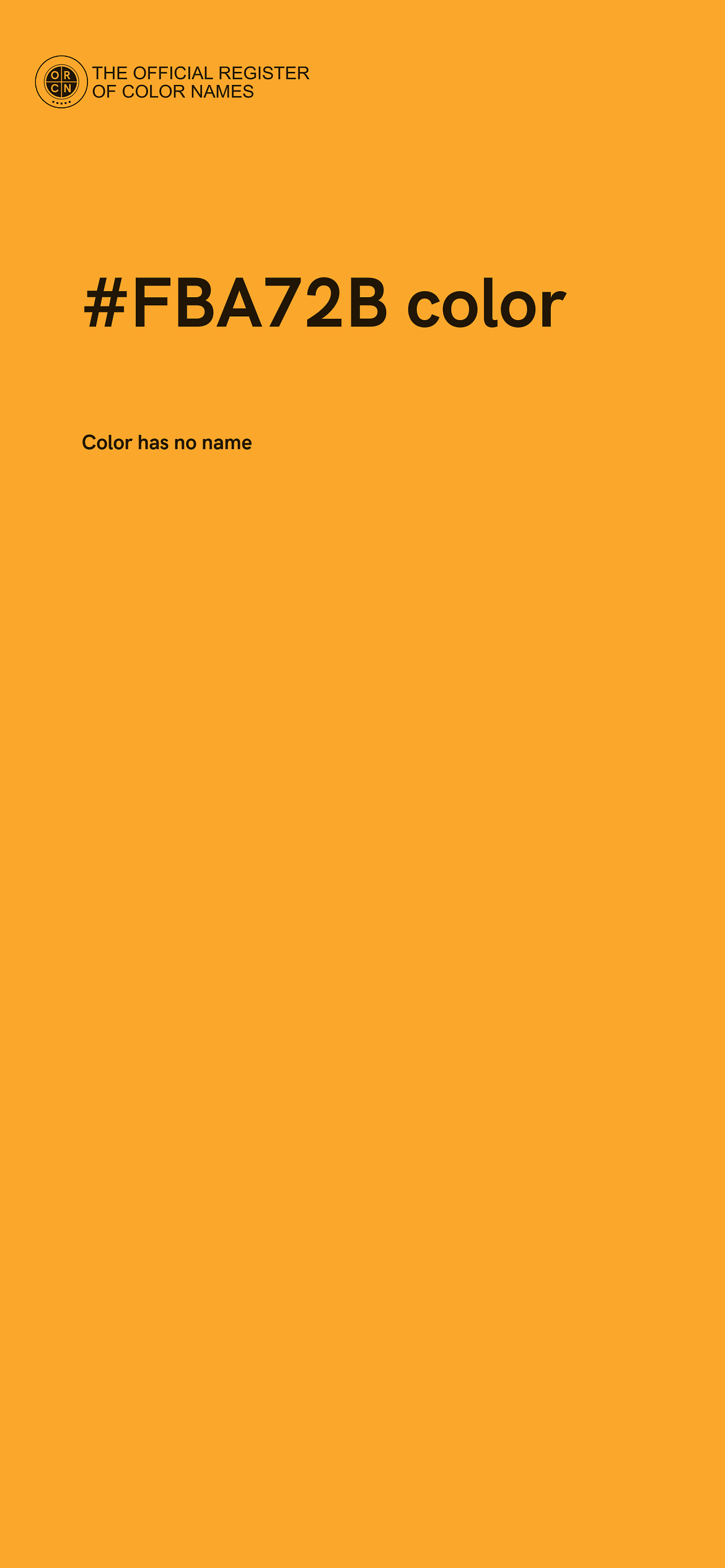 The digital color HEX #FBA72B belongs to the Orange Color Family featuring Full Saturation (Saturation Family) and Light (Brightness Family).