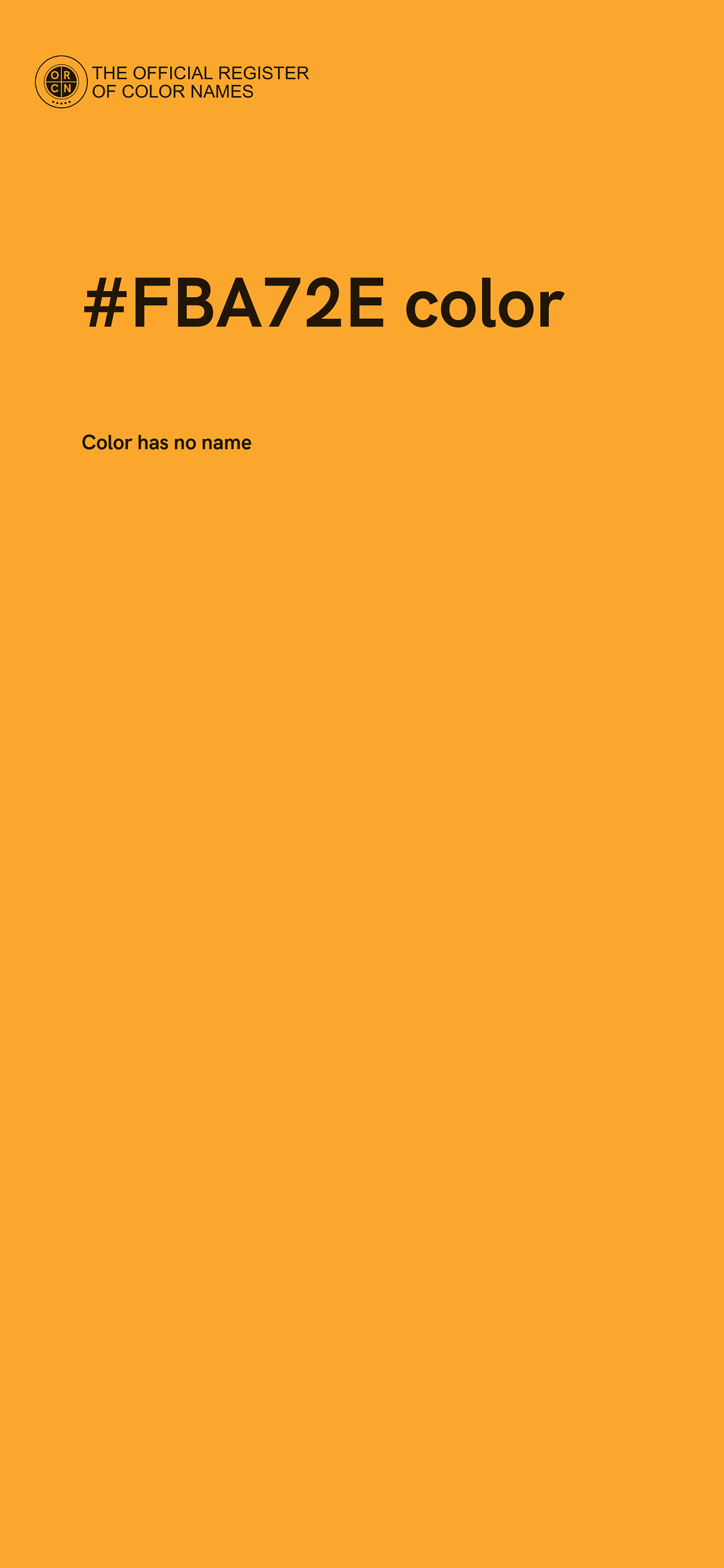 The digital color HEX #FBA72E belongs to the Orange Color Family featuring Full Saturation (Saturation Family) and Light (Brightness Family).