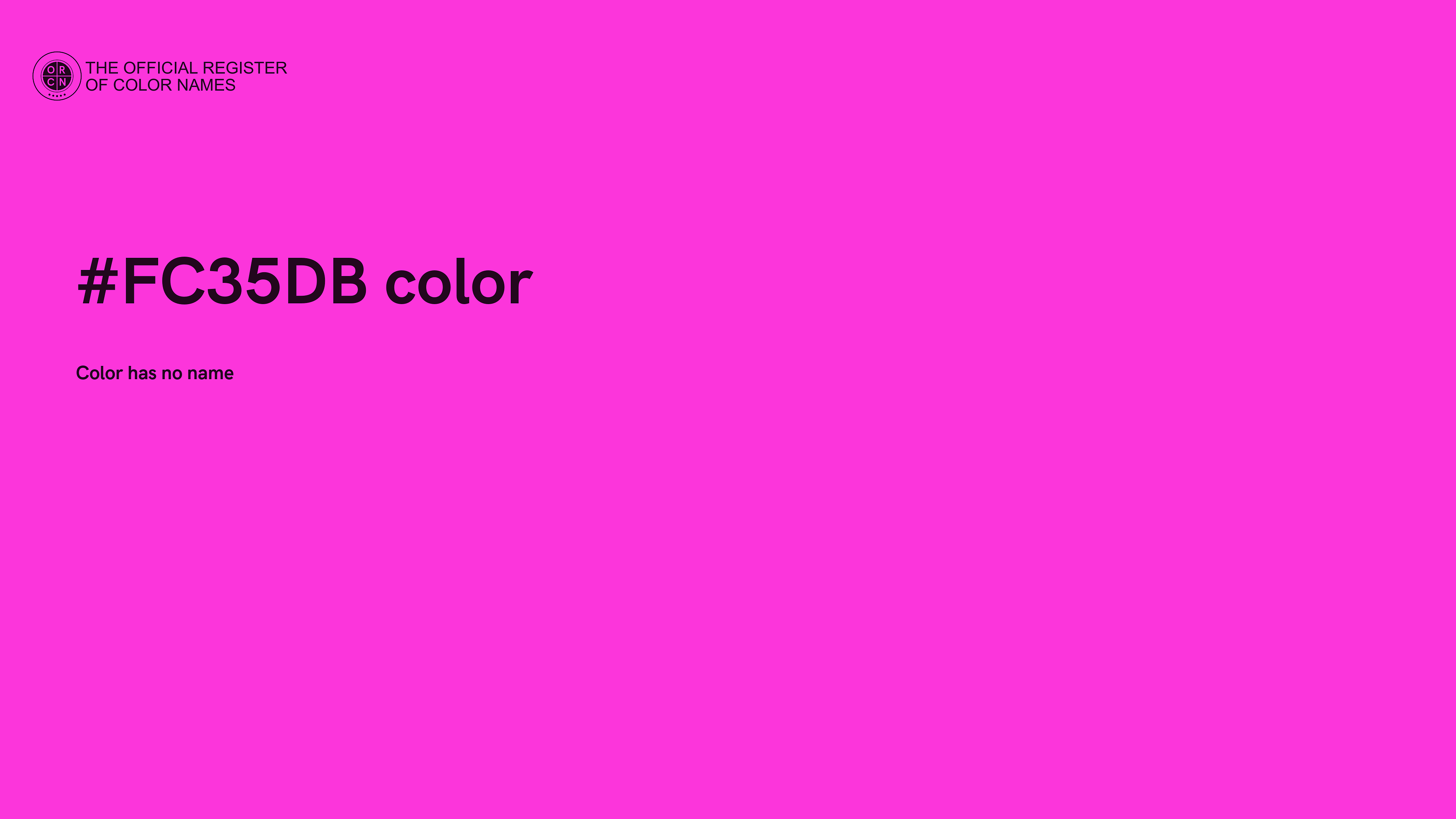 For printing in non digital world, #FC35DB is represented in CMYK as 0 Cyan, 78 Magenta, 13 Yellow, and 1 Black (Key) (C:0 M:78 Y:13 K:1).