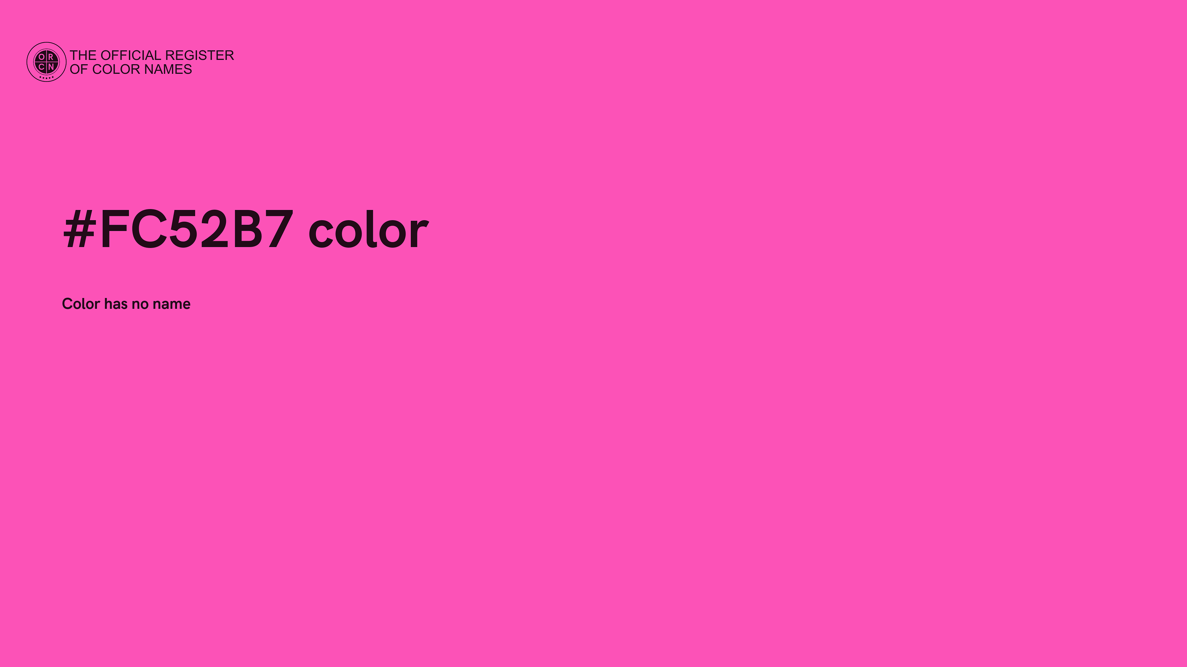 The digital color HEX #FC52B7 belongs to the Rose Color Family featuring Full Saturation (Saturation Family) and Very Light (Brightness Family).