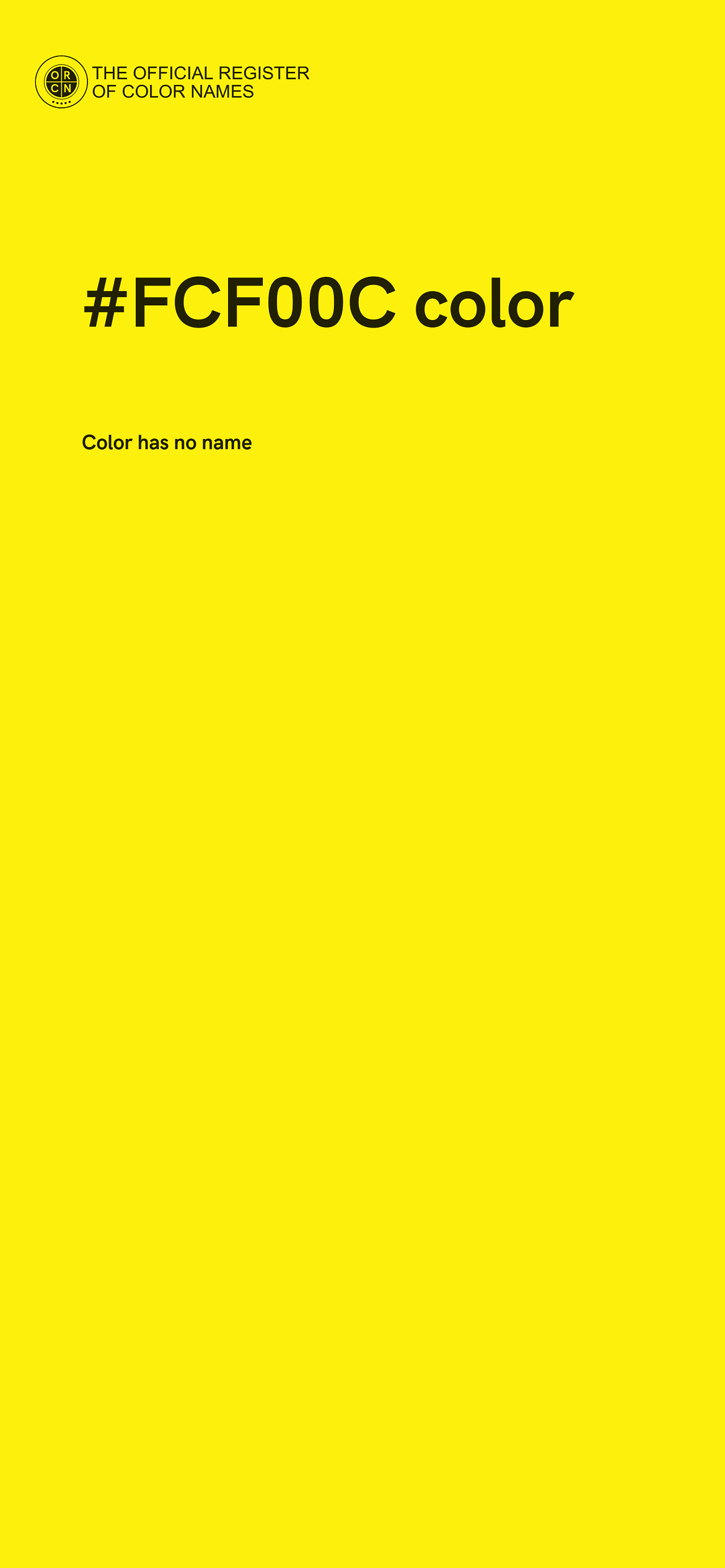 The digital color HEX #FCF00C belongs to the Yellow Color Family featuring Full Saturation (Saturation Family) and Light (Brightness Family).