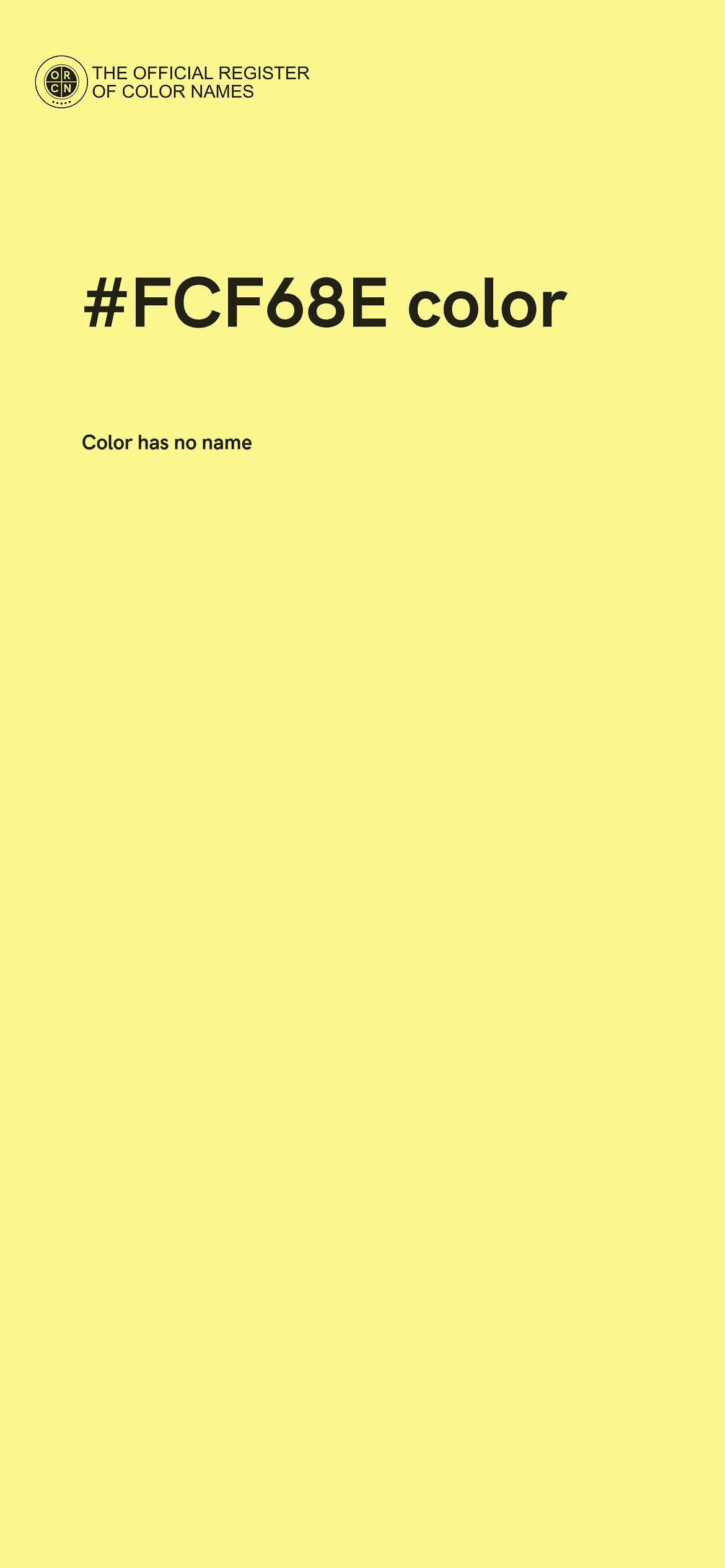 The digital color HEX #FCF68E belongs to the Yellow Color Family featuring Full Saturation (Saturation Family) and Very Light (Brightness Family).