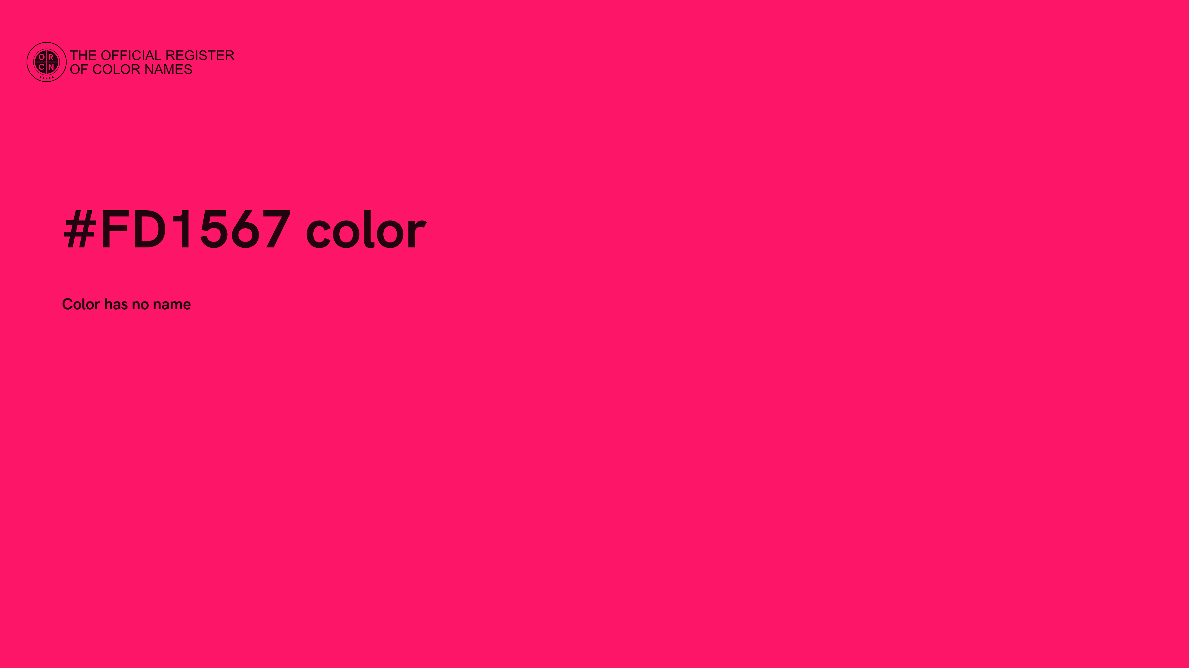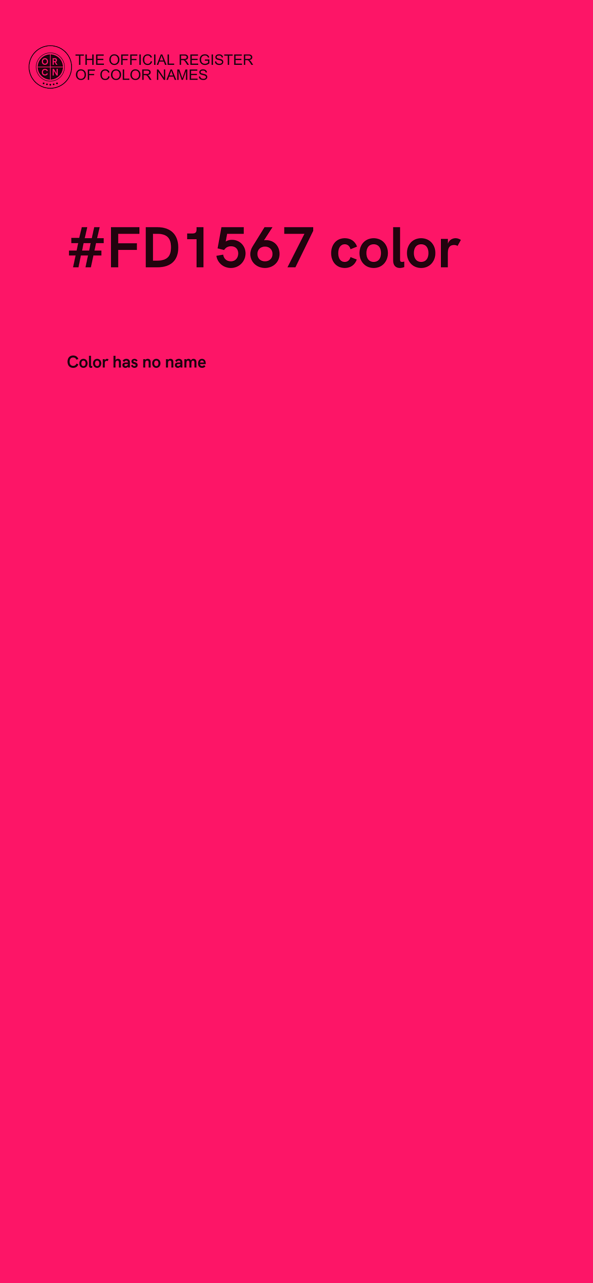 The digital color HEX #FD1567 belongs to the Rose Color Family featuring Full Saturation (Saturation Family) and Light (Brightness Family).