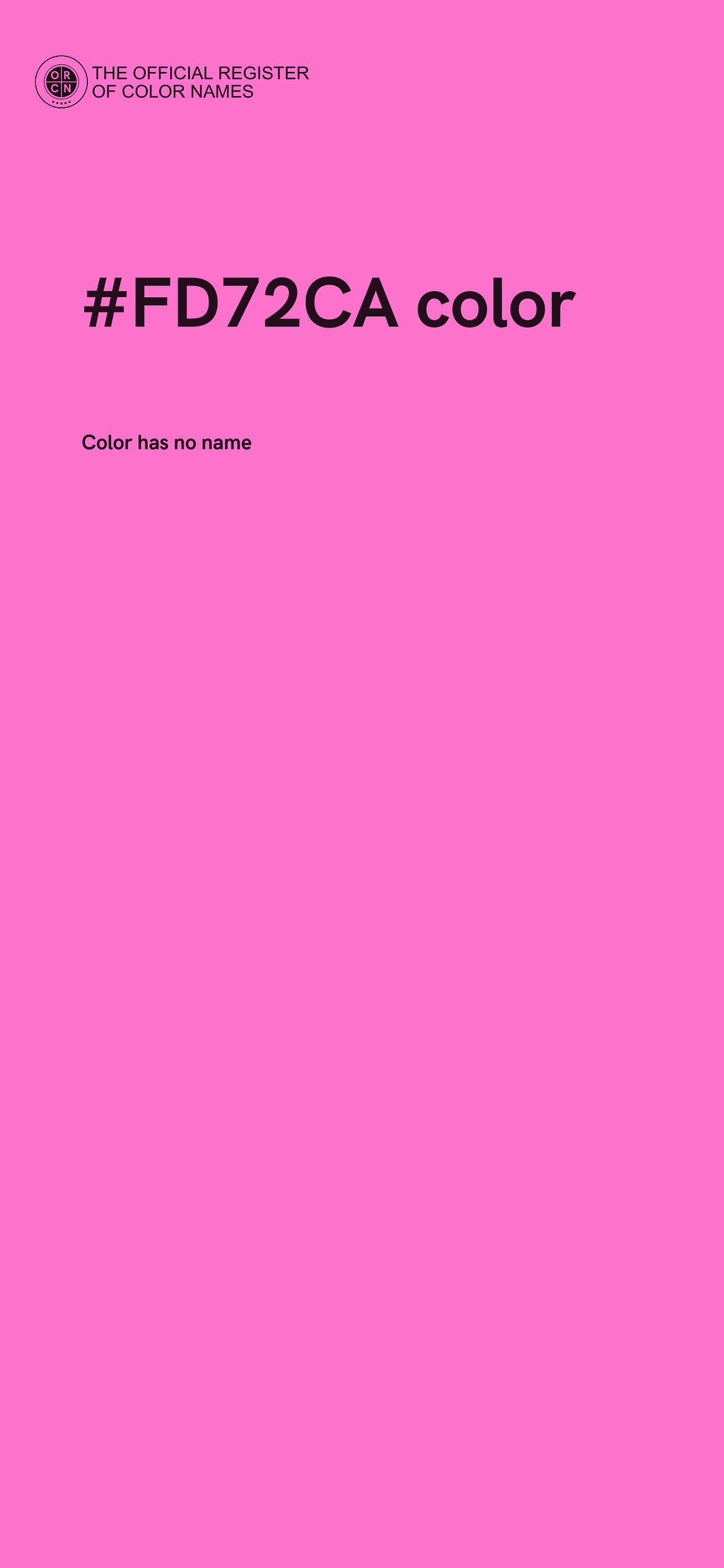 The digital color HEX #FD72CA belongs to the Rose Color Family featuring Full Saturation (Saturation Family) and Very Light (Brightness Family).
