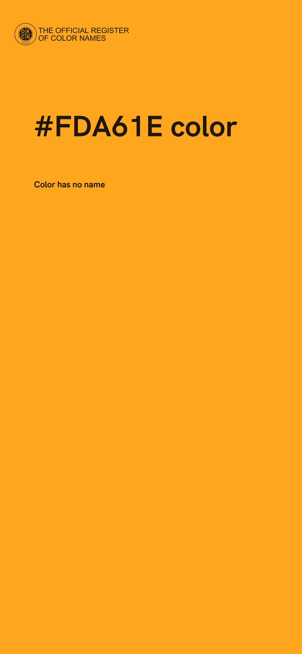 The digital color HEX #FDA61E belongs to the Orange Color Family featuring Full Saturation (Saturation Family) and Light (Brightness Family).