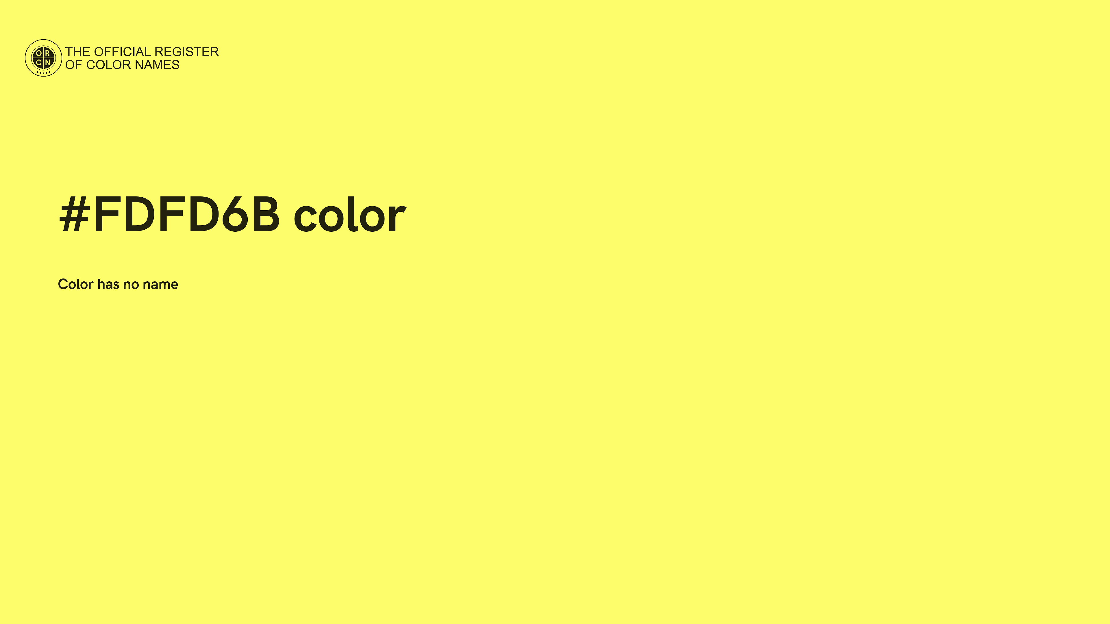 The digital color HEX #FDFD6B belongs to the Yellow Color Family featuring Full Saturation (Saturation Family) and Very Light (Brightness Family).