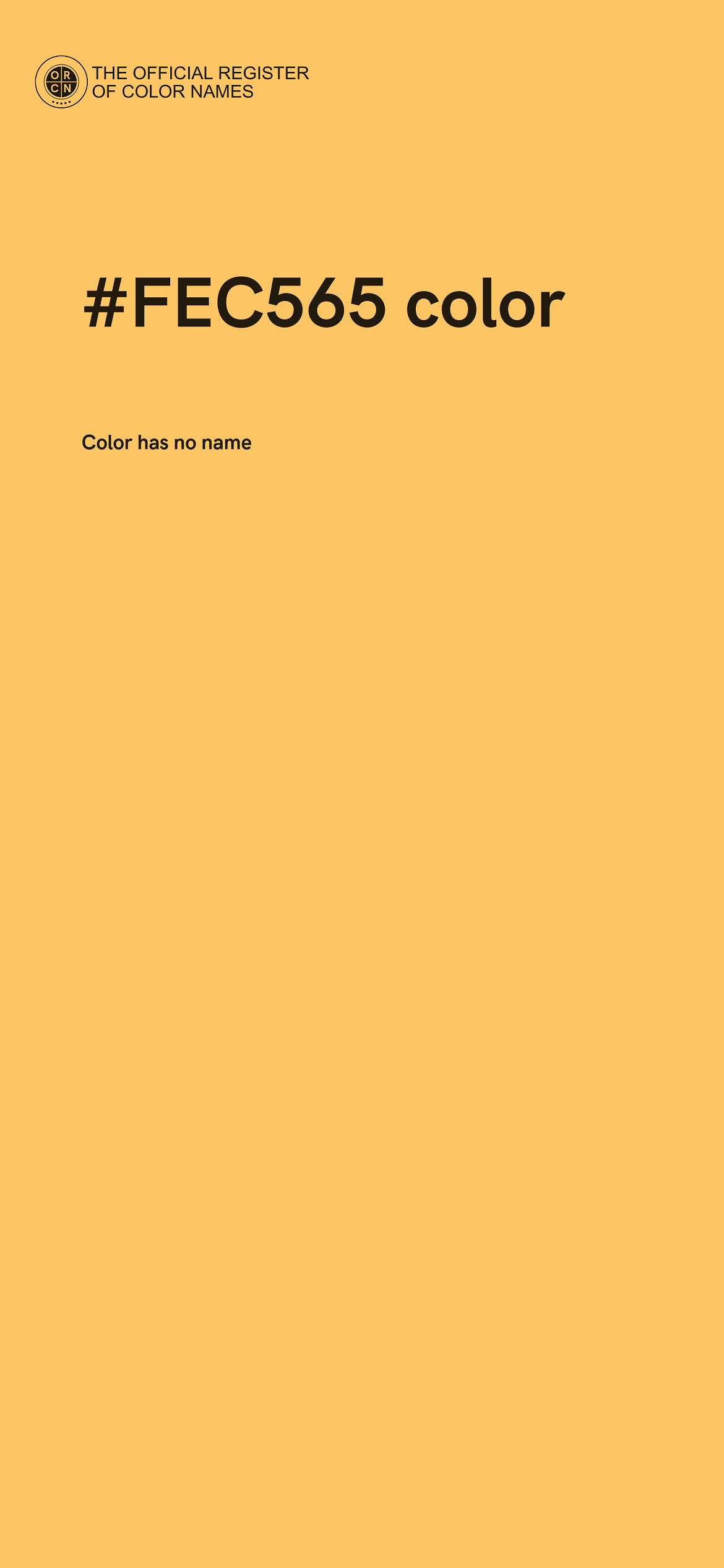 The digital color HEX #FEC565 belongs to the Orange Color Family featuring Full Saturation (Saturation Family) and Very Light (Brightness Family).