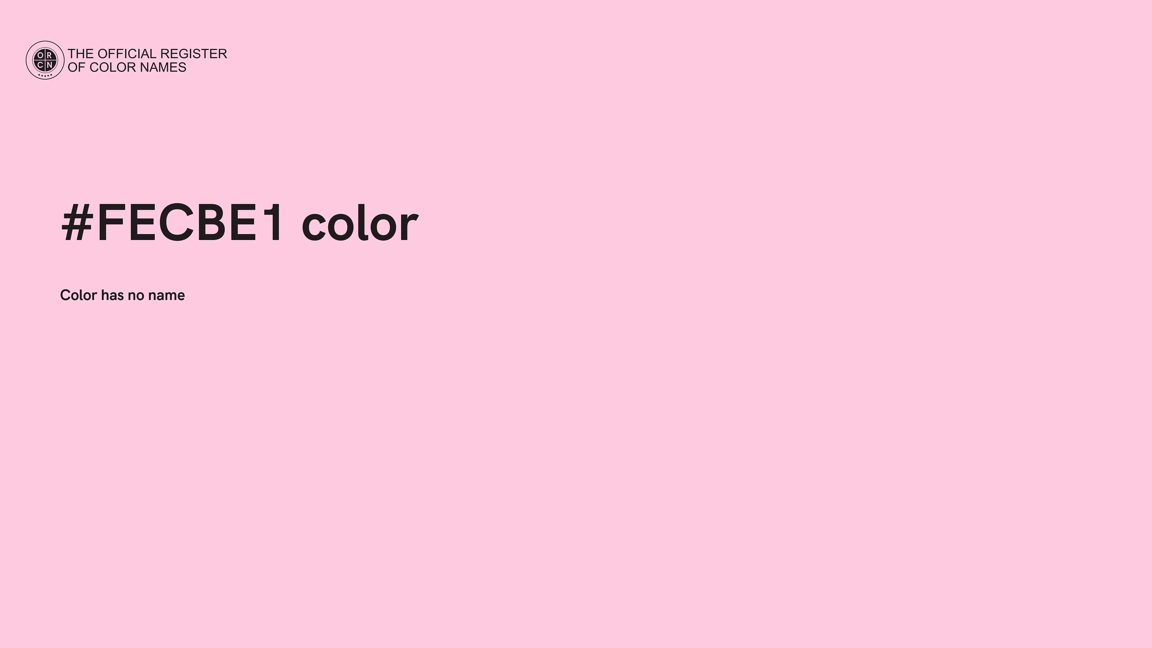The digital color HEX #FECBE1 belongs to the Rose Color Family featuring Full Saturation (Saturation Family) and Luminous (Brightness Family).