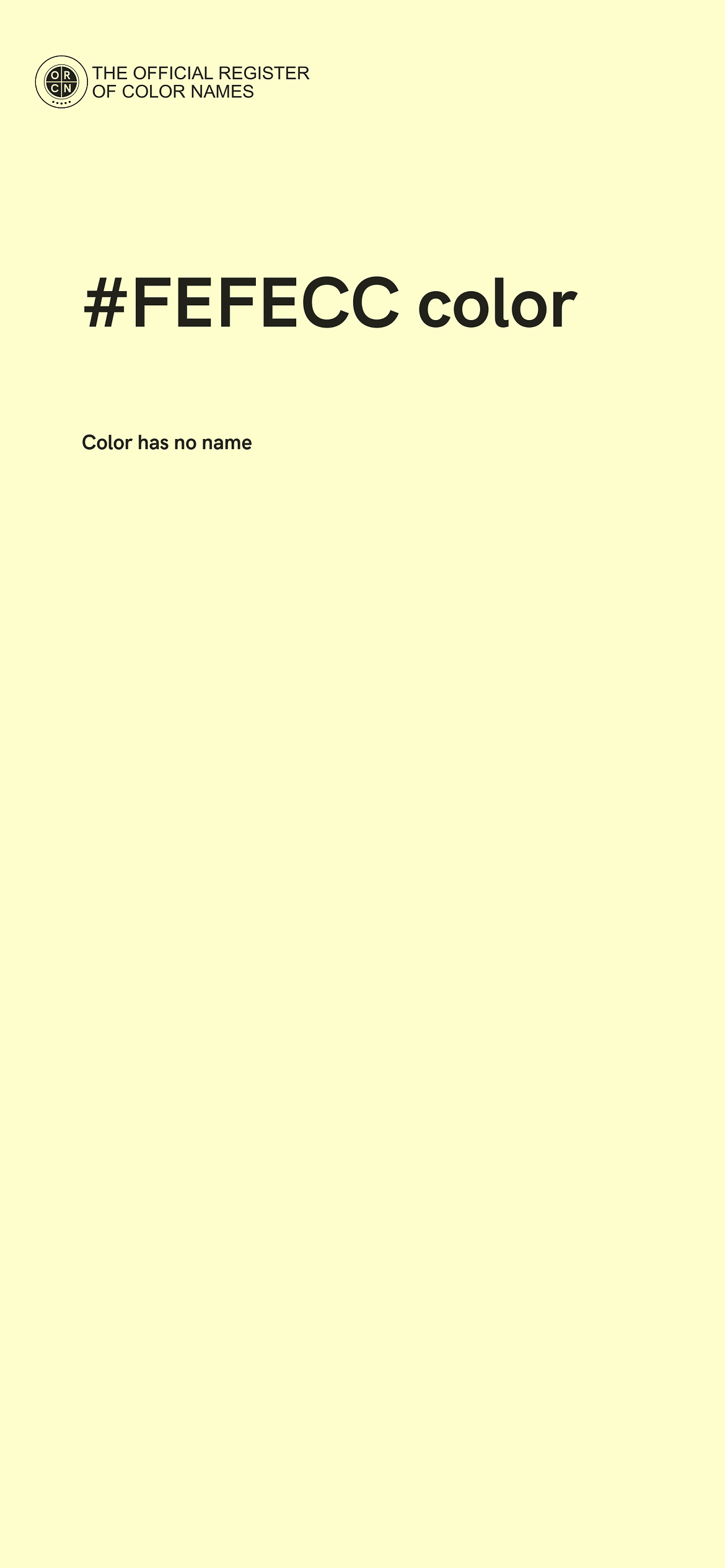 The digital color HEX #FEFECC belongs to the Yellow Color Family featuring Full Saturation (Saturation Family) and Luminous (Brightness Family).