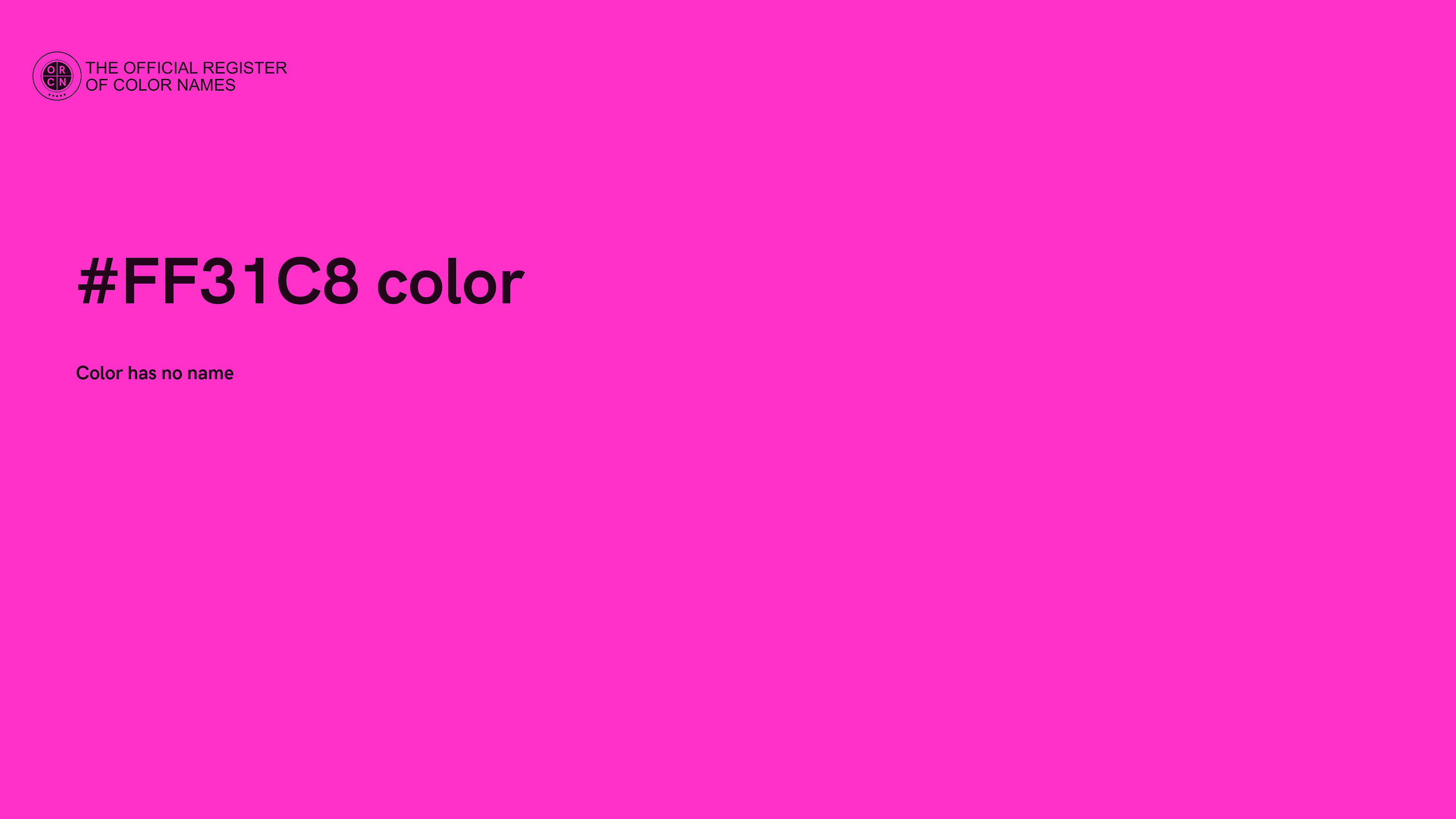 The digital color HEX #FF31C8 belongs to the Rose Color Family featuring Full Saturation (Saturation Family) and Very Light (Brightness Family).