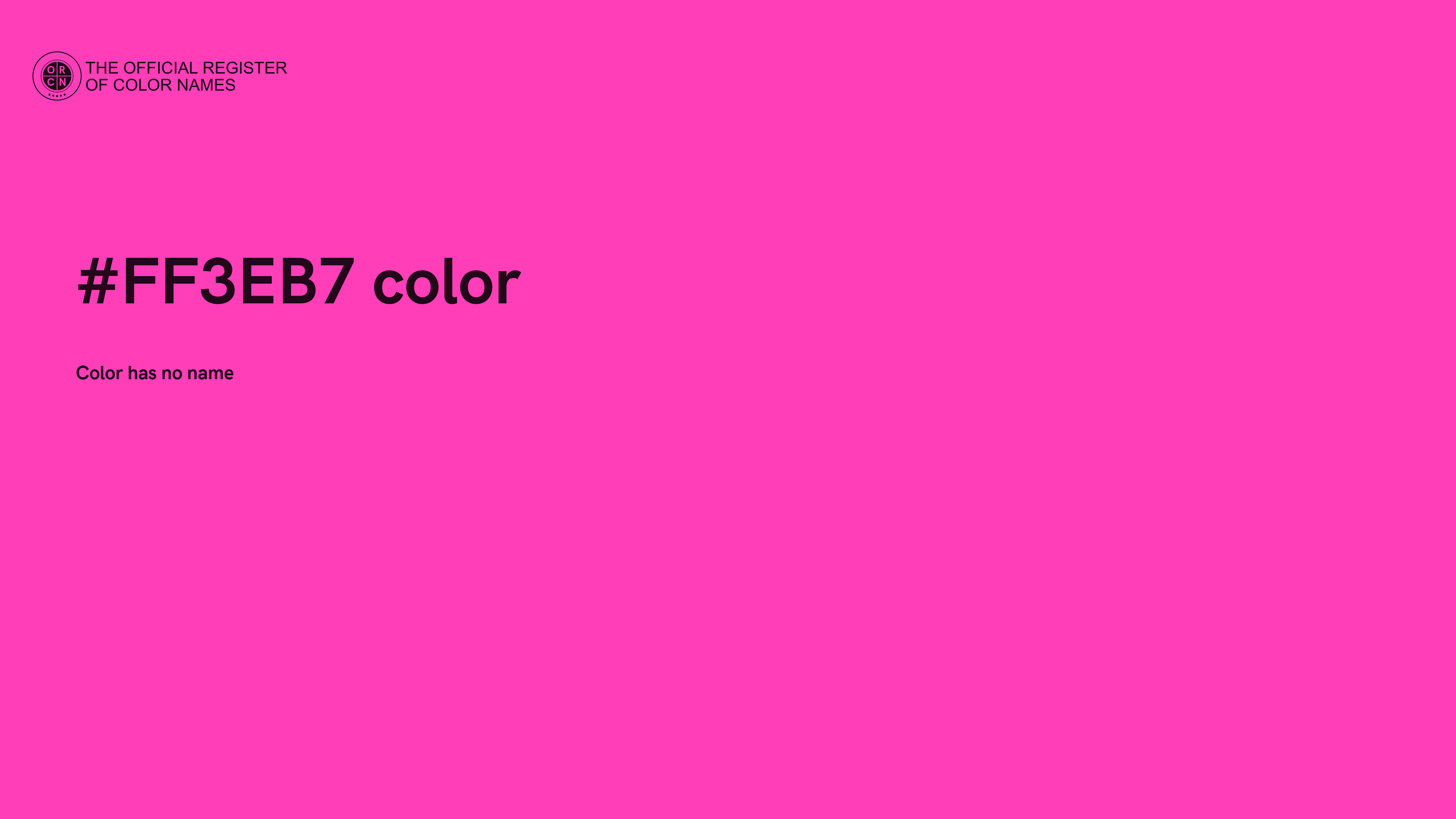 The digital color HEX #FF3EB7 belongs to the Rose Color Family featuring Full Saturation (Saturation Family) and Very Light (Brightness Family).