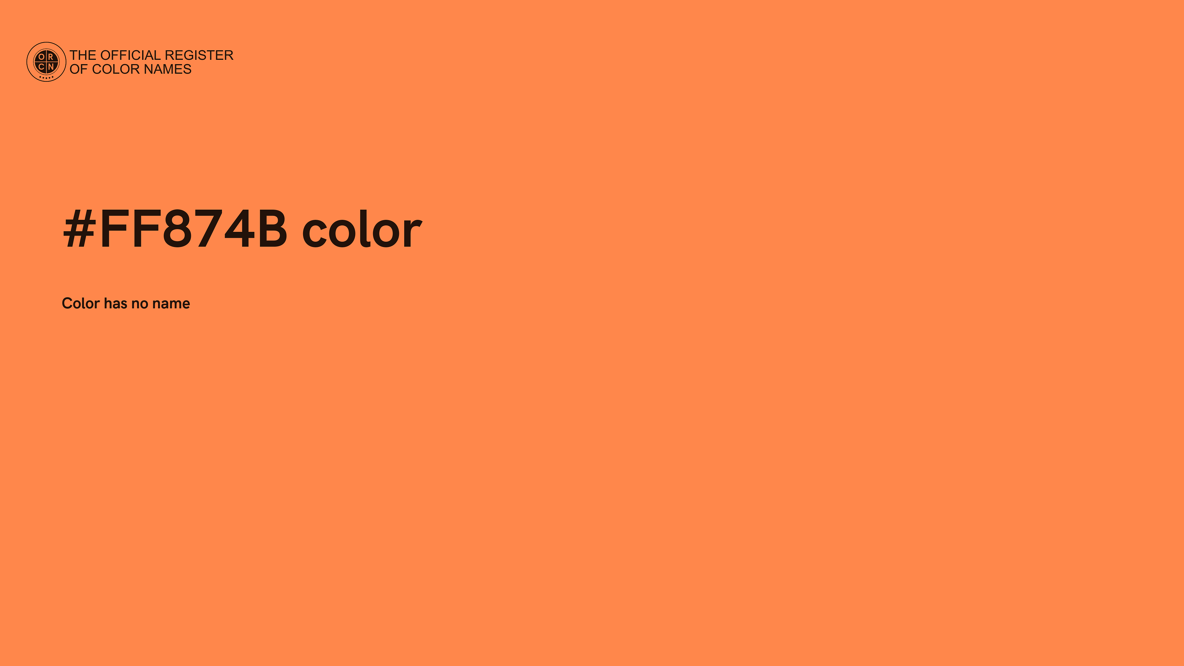 The digital color HEX #FF874B belongs to the Orange Color Family featuring Full Saturation (Saturation Family) and Very Light (Brightness Family).