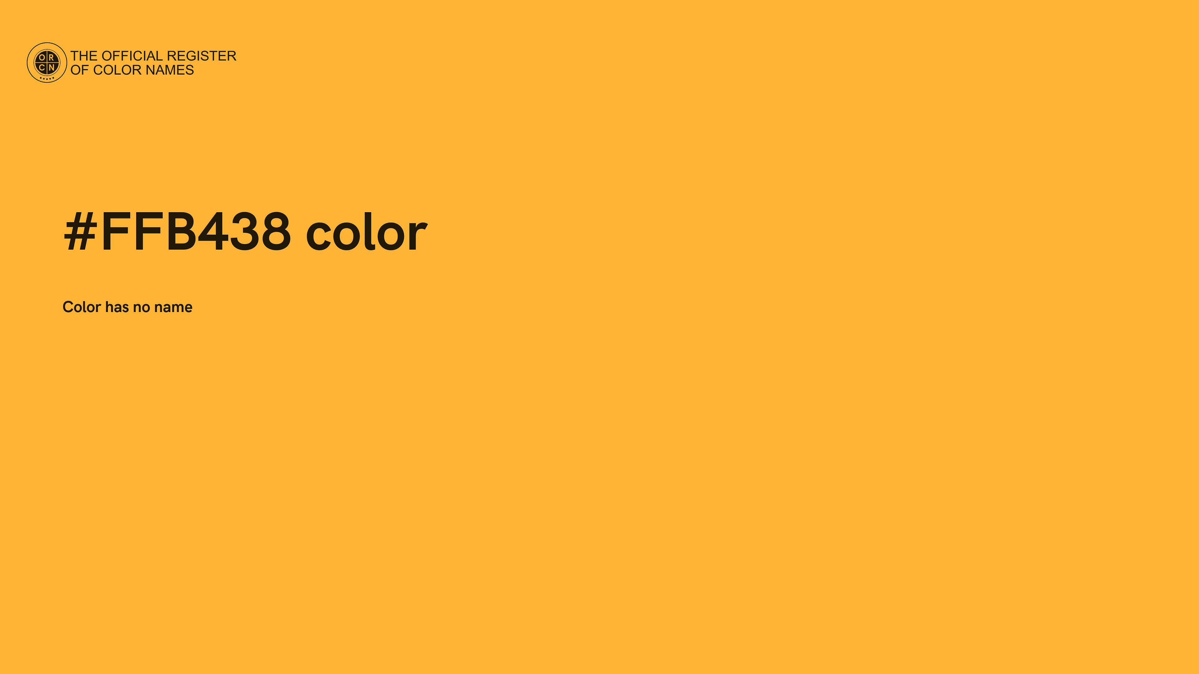 The digital color HEX #FFB438 belongs to the Orange Color Family featuring Full Saturation (Saturation Family) and Very Light (Brightness Family).