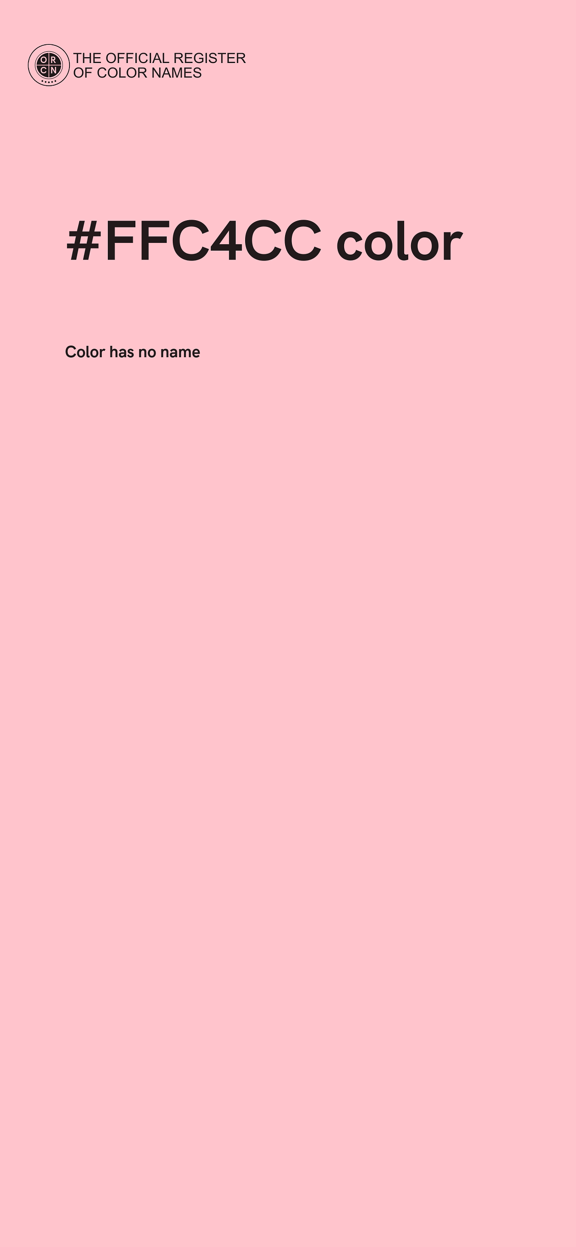 The digital color HEX #FFC4CC belongs to the Red Color Family featuring Full Saturation (Saturation Family) and Luminous (Brightness Family).
