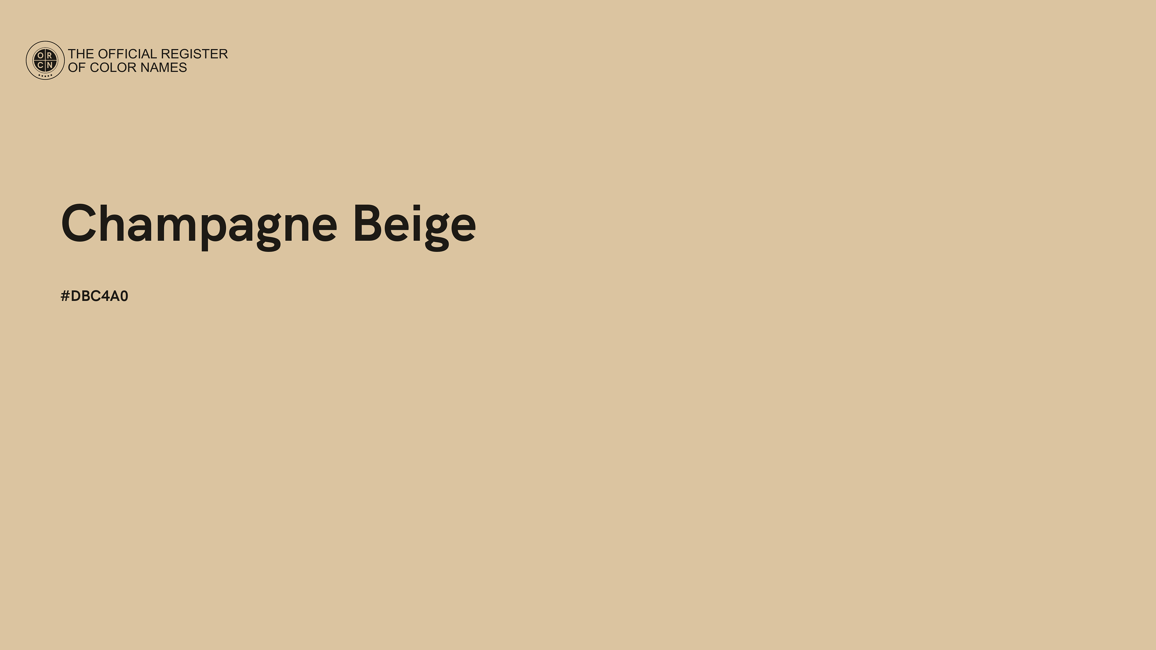 The digital color HEX #DBC4A0, known as "Champagne Beige", belongs to the Orange Color Family featuring Moderate Saturation (Saturation Family) and Very Light (Brightness Family).