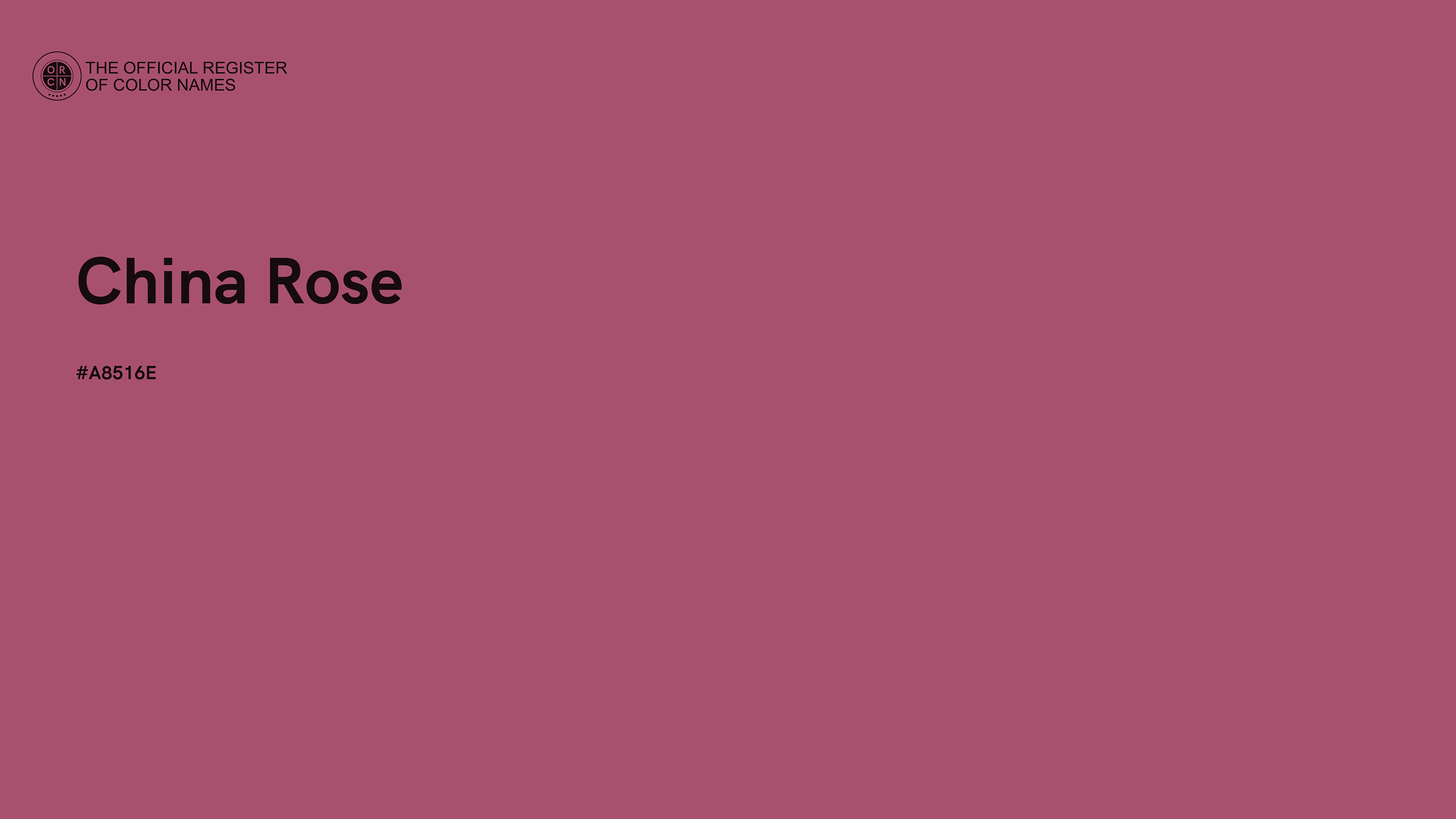 The digital color HEX #A8516E, known as "China Rose", belongs to the Rose Color Family featuring Mild Saturation (Saturation Family) and Light (Brightness Family).