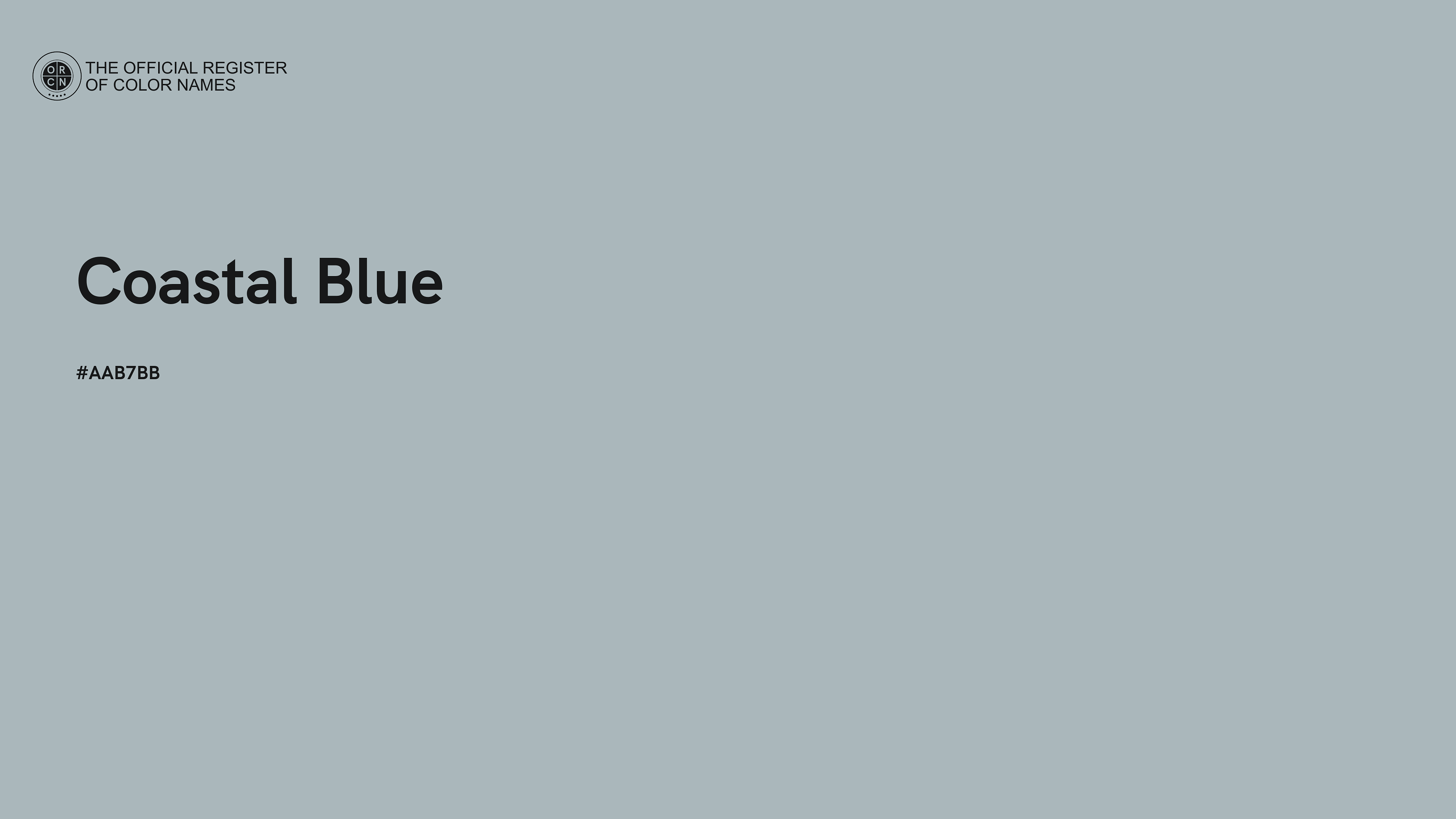 The digital color HEX #AAB7BB, known as "Coastal Blue", belongs to the Cyan Color Family featuring Low Saturation (Saturation Family) and Very Light (Brightness Family).