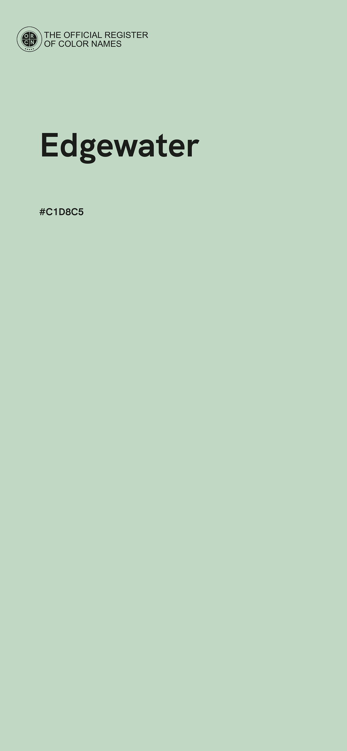 The digital color HEX #C1D8C5, known as "Edgewater", belongs to the Green Color Family featuring Low Saturation (Saturation Family) and Very Light (Brightness Family).