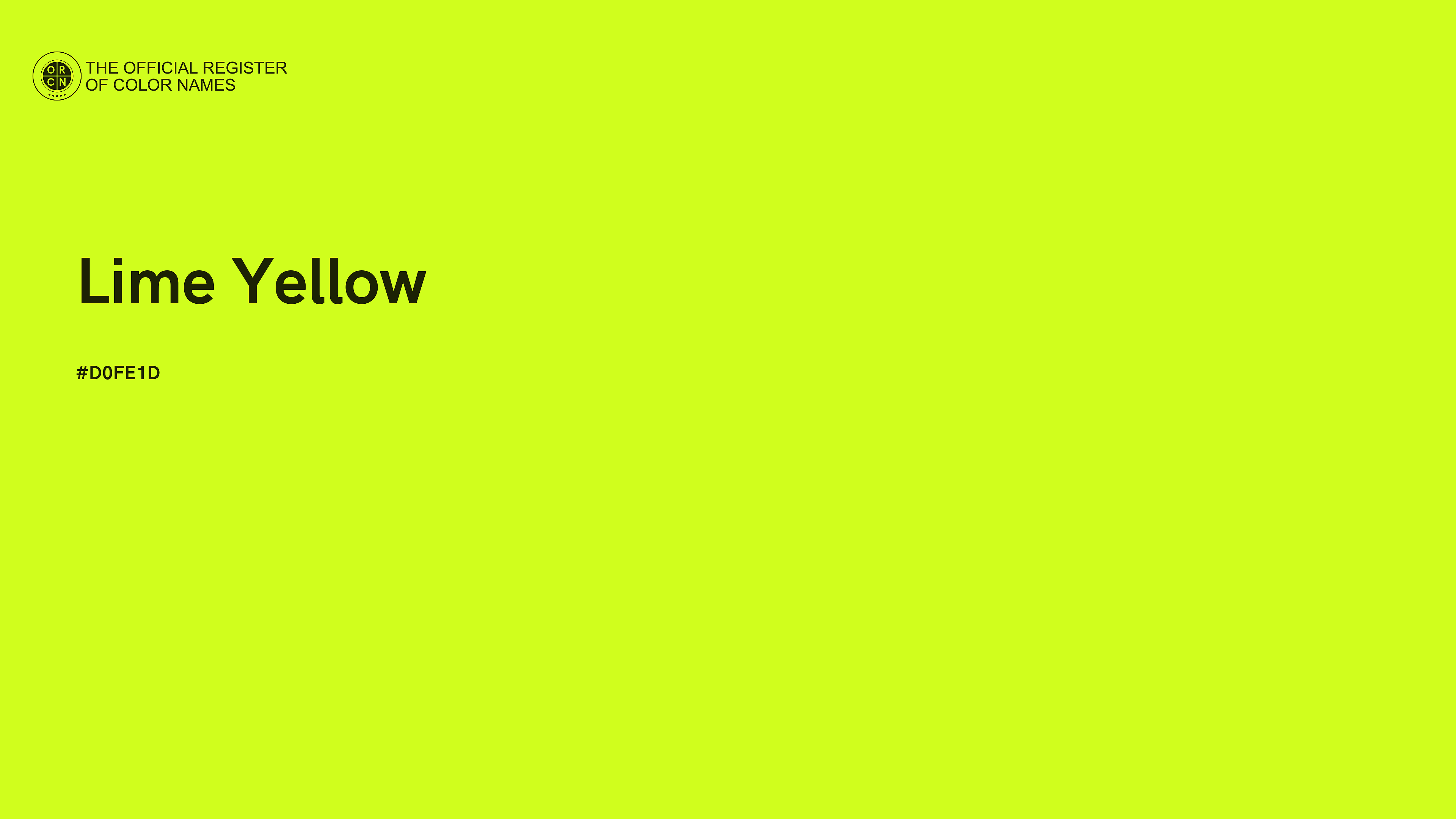 The digital color HEX #D0FE1D, known as "Lime Yellow", belongs to the Yellow Color Family featuring Full Saturation (Saturation Family) and Light (Brightness Family).