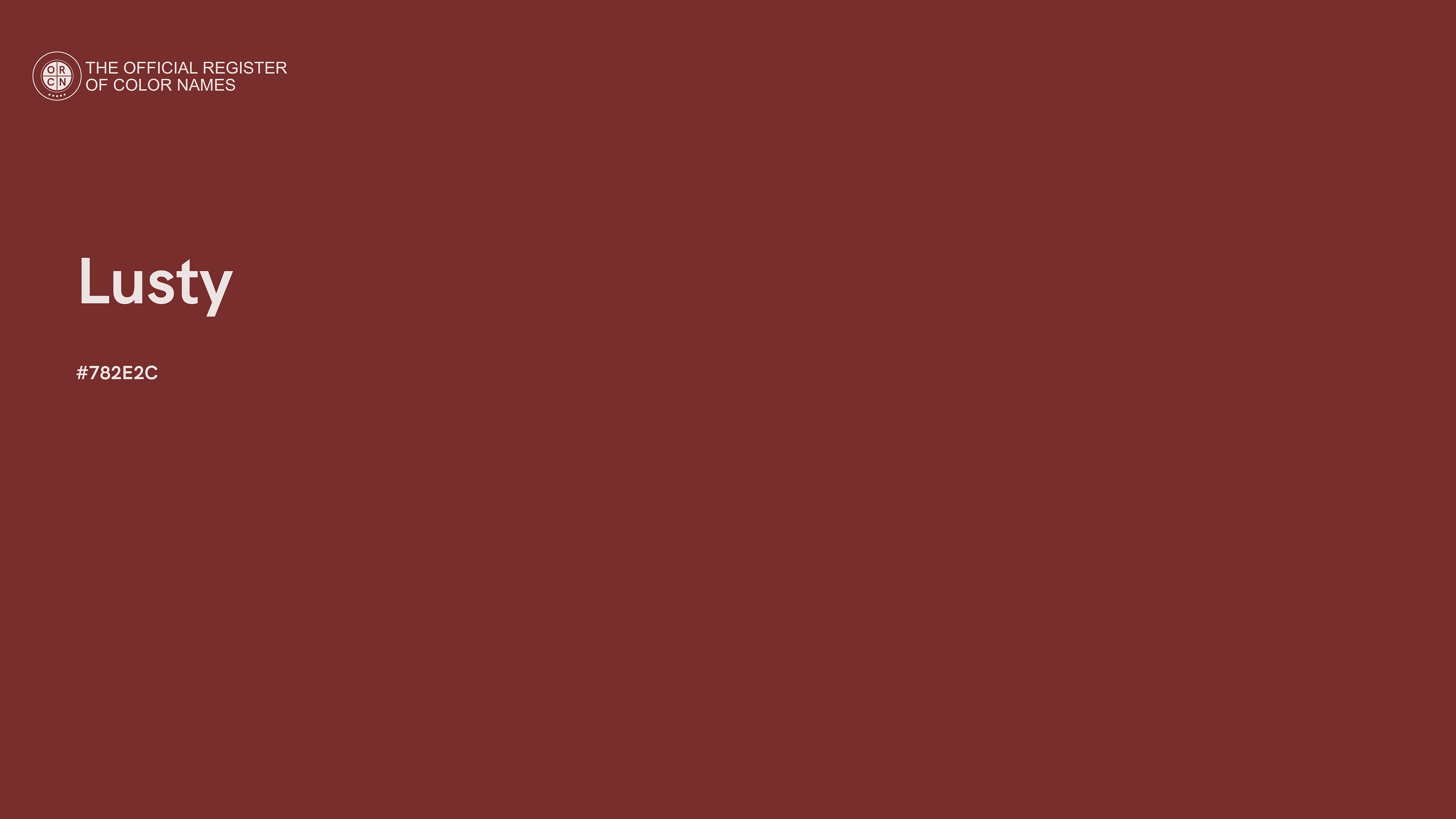 The digital color HEX #782E2C, known as "Lusty", belongs to the Red Color Family featuring Moderate Saturation (Saturation Family) and Neutral (Brightness Family).