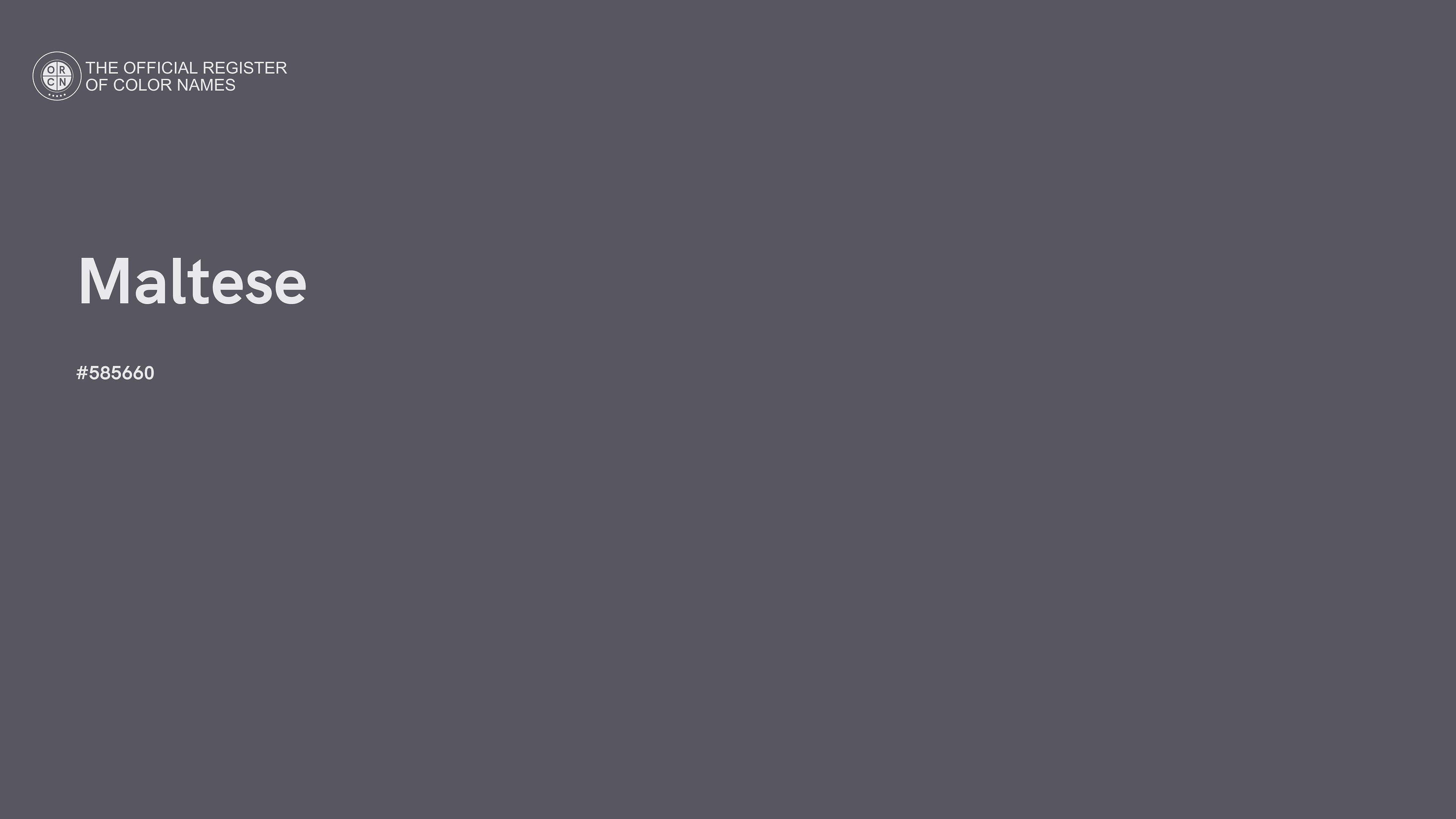 The digital color HEX #585660, known as "Maltese", belongs to the Blue Color Family featuring Desaturated (Saturation Family) and Neutral (Brightness Family).