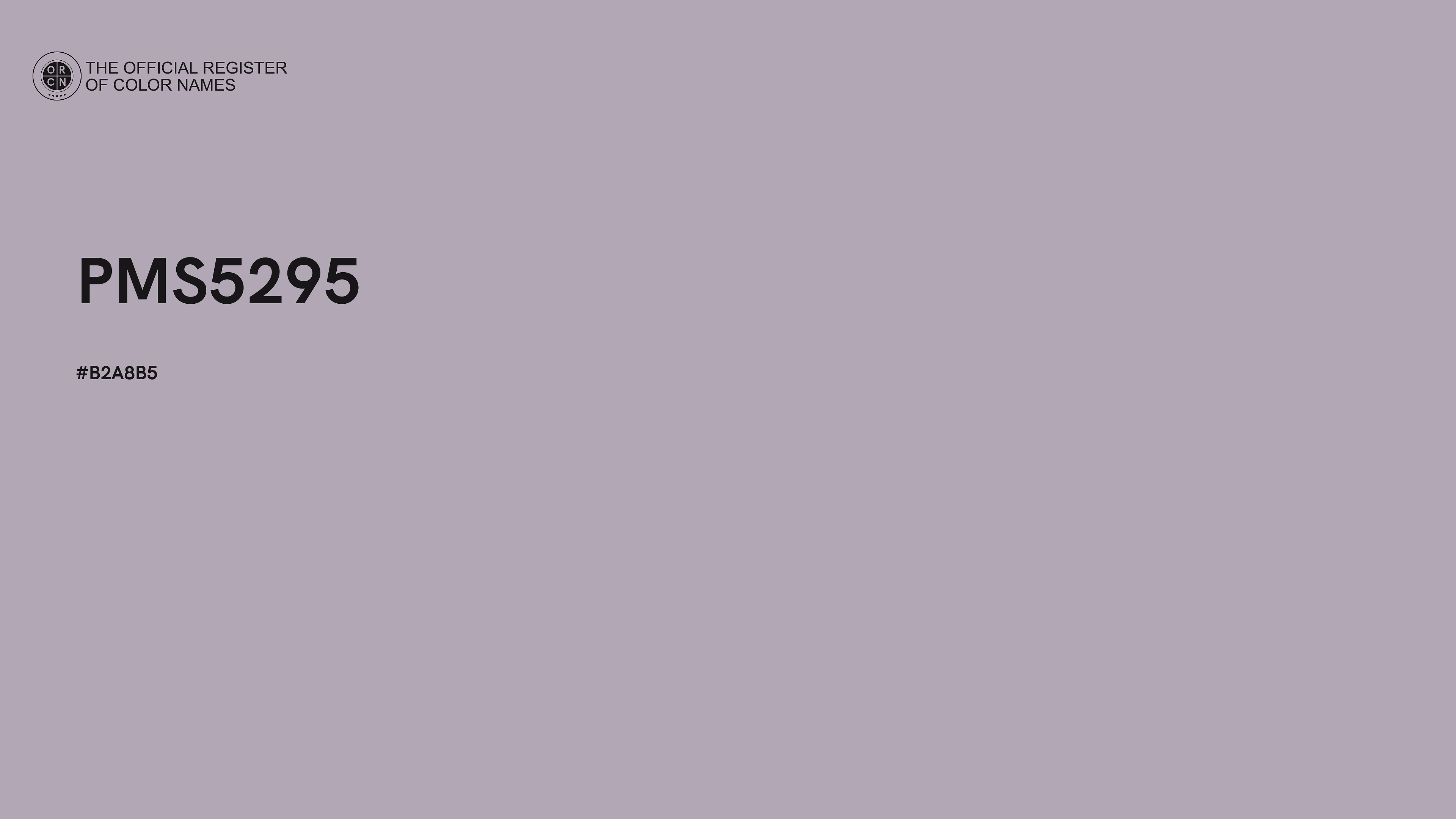 The digital color HEX #B2A8B5, known as "PMS5295", belongs to the Magenta Color Family featuring Desaturated (Saturation Family) and Very Light (Brightness Family).