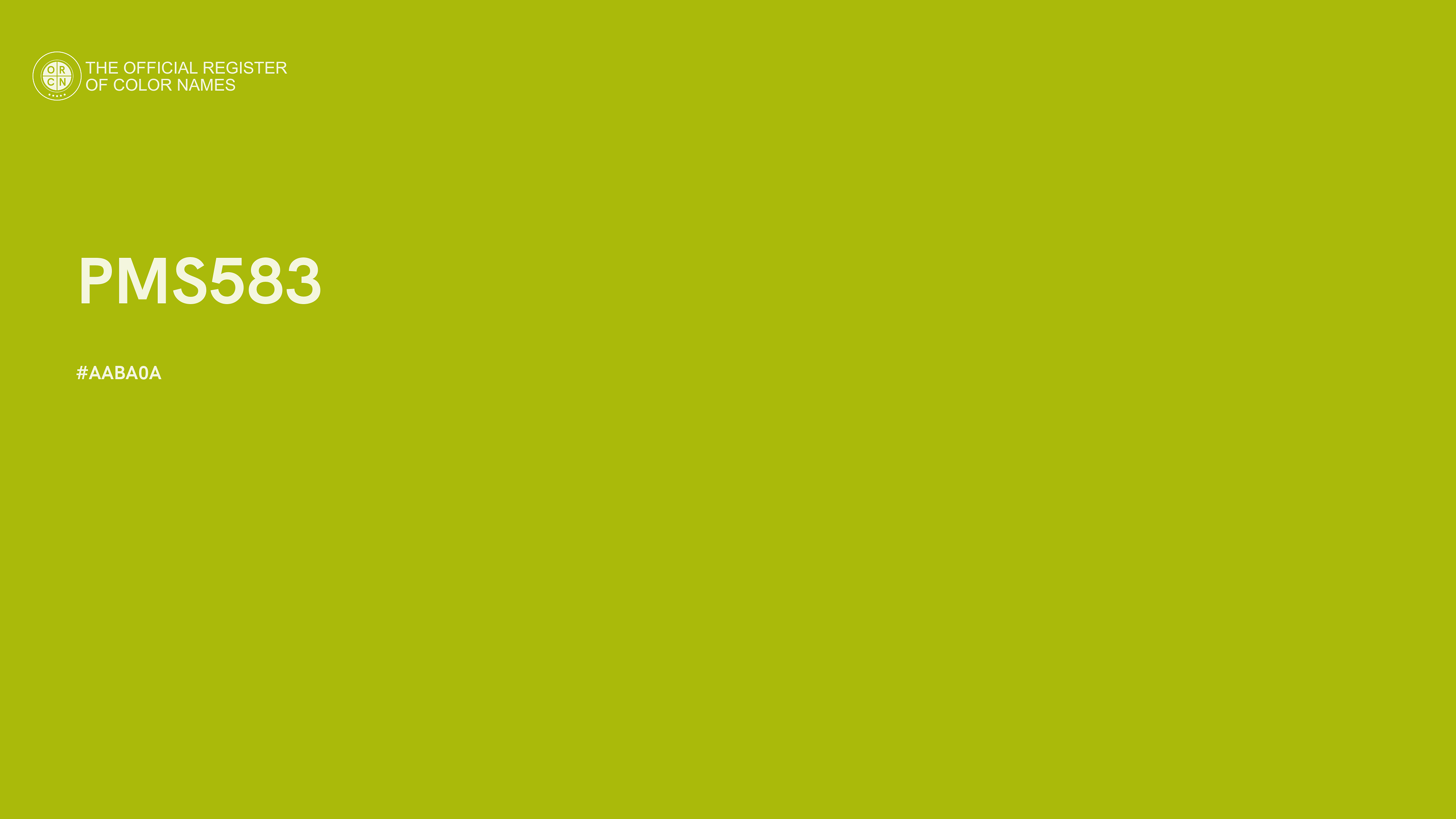 The digital color HEX #AABA0A, known as "PMS583", belongs to the Yellow Color Family featuring Full Saturation (Saturation Family) and Neutral (Brightness Family).