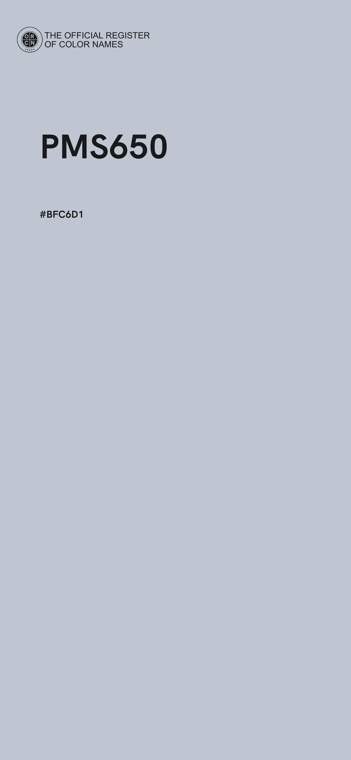 The digital color HEX #BFC6D1, known as "PMS650", belongs to the Azure Color Family featuring Low Saturation (Saturation Family) and Very Light (Brightness Family).