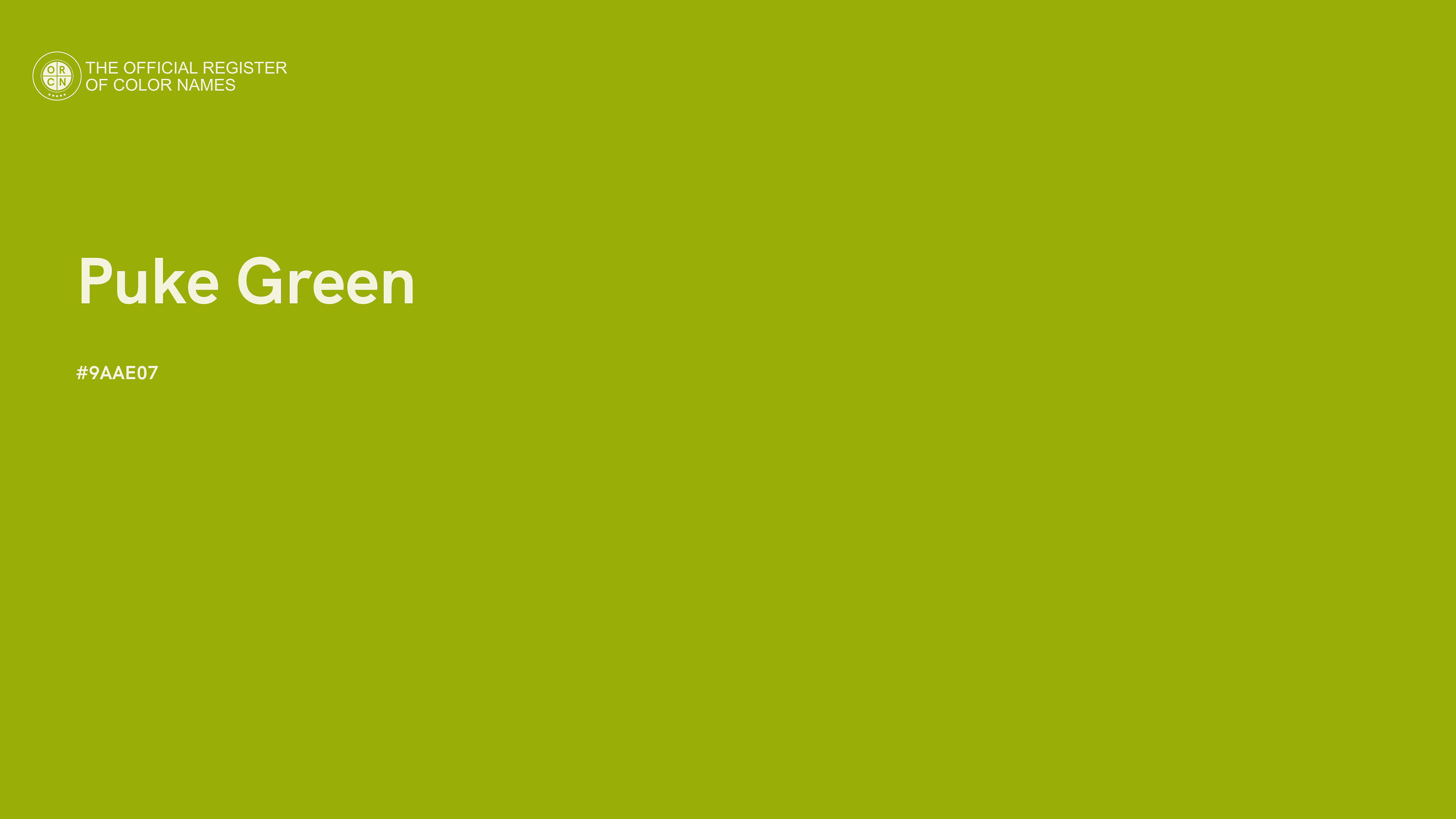 The digital color HEX #9AAE07, known as "Puke Green", belongs to the Yellow Color Family featuring Full Saturation (Saturation Family) and Neutral (Brightness Family).