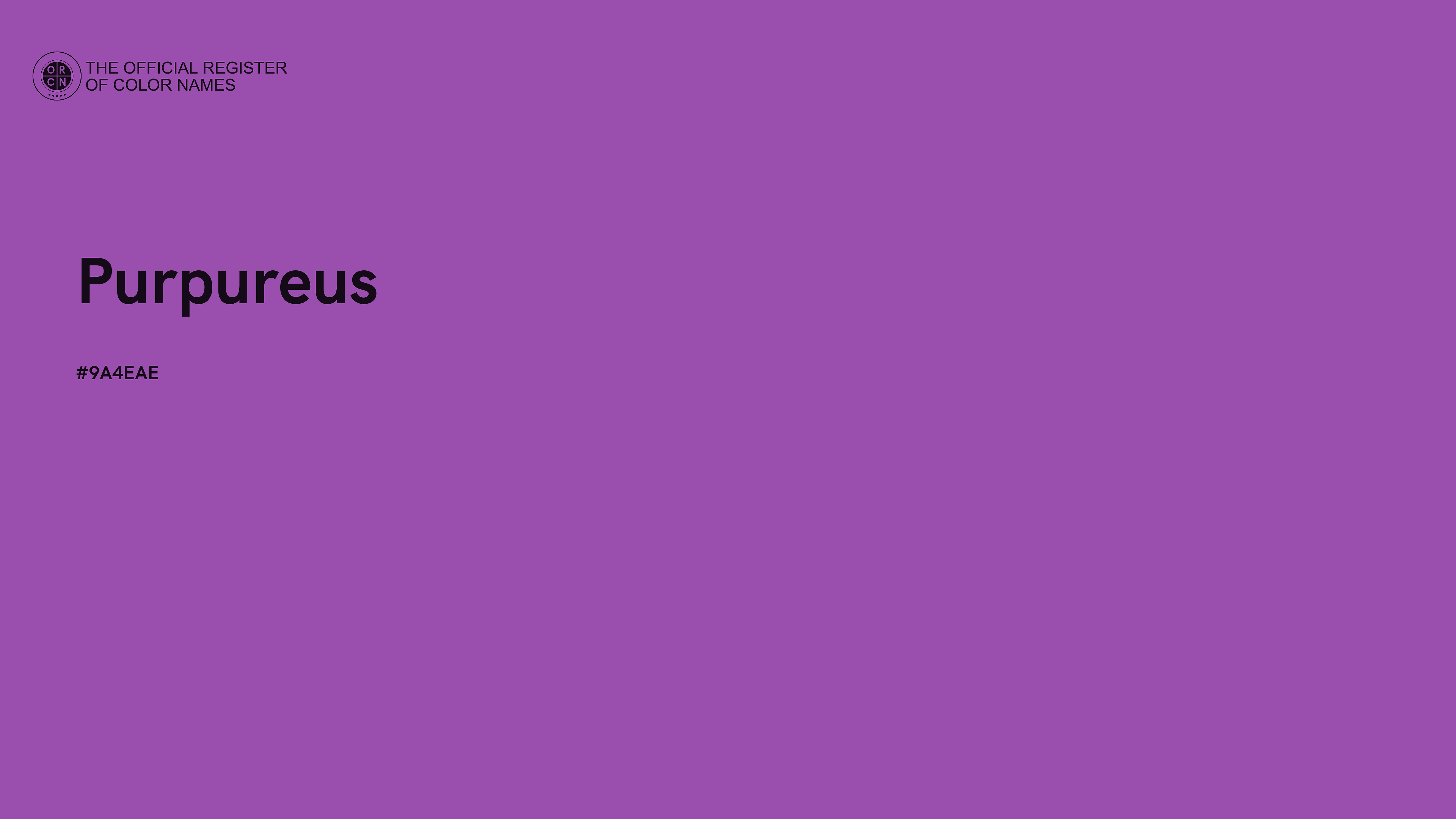 The digital color HEX #9A4EAE, known as "Purpureus", belongs to the Magenta Color Family featuring Mild Saturation (Saturation Family) and Light (Brightness Family).