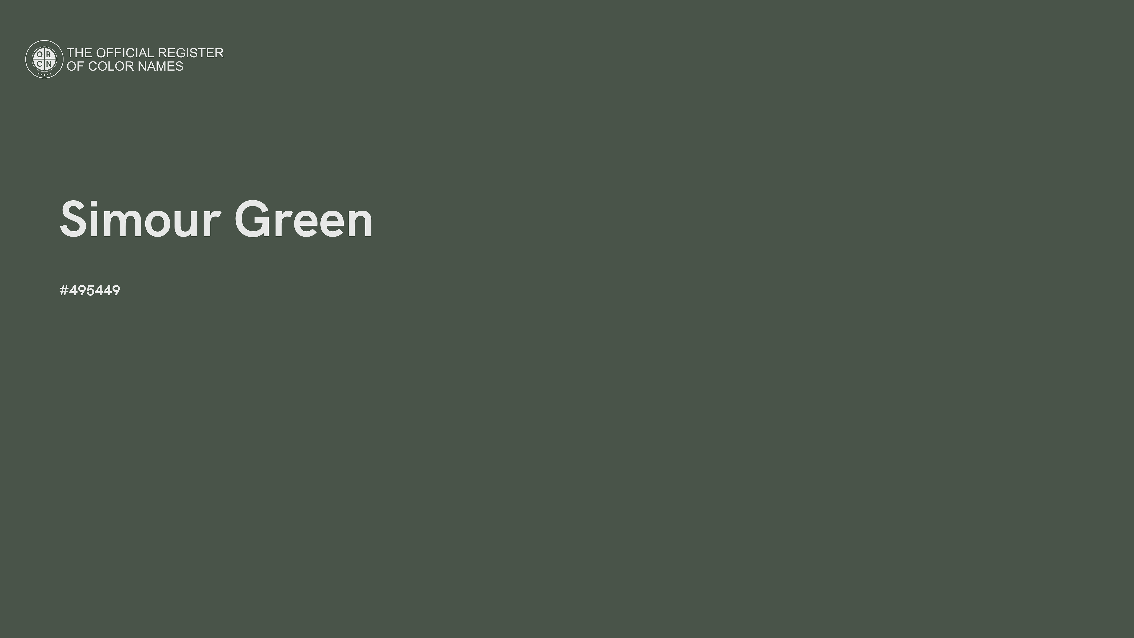 The digital color HEX #495449, known as "Simour Green", belongs to the Green Color Family featuring Desaturated (Saturation Family) and Neutral (Brightness Family).