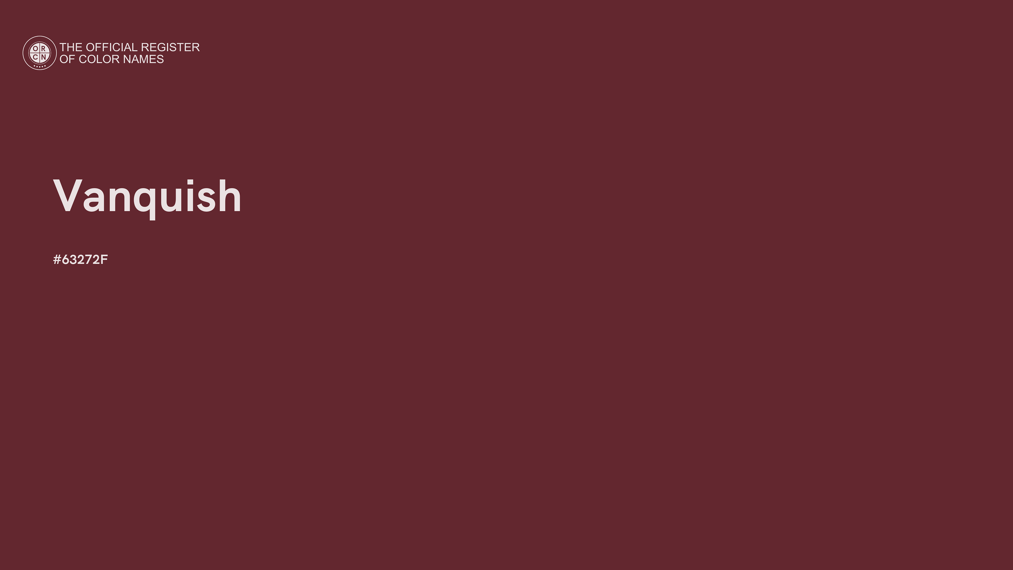 The digital color HEX #63272F, known as "Vanquish", belongs to the Red Color Family featuring Moderate Saturation (Saturation Family) and Neutral (Brightness Family).